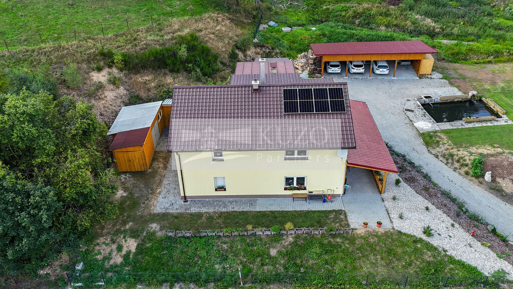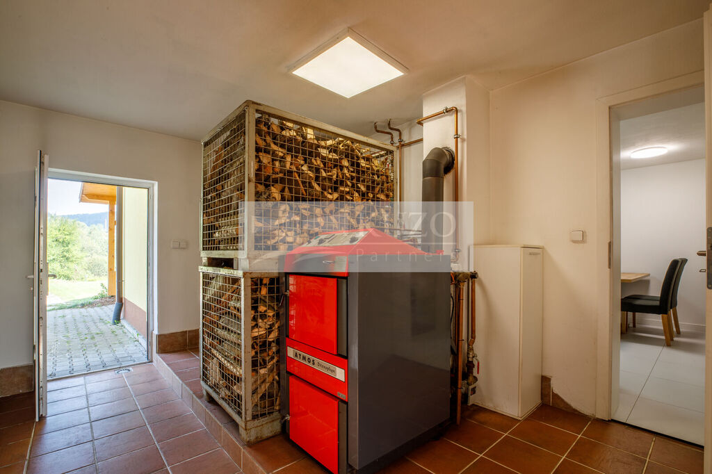 Přízemí disponuje obývacím pokojem, dalšími 2 pokoji, zádveřím, koupelnou, spíží, prostornou kuchyní, kotelnou, skladem, samostatným záchodem a garáží. Do prvního patra se vchází venkovním schodištěm. Zde se nachází obývací pokoj, další 2 pokoje, zádveří, koupelna, chodba, prostorná kuchyně, spíž a půda se dvěma pokoji. V objektu je instalovaná kamera se vzdáleným přístupem přes wifi. Celý dům působí prostorně a vzdušně.