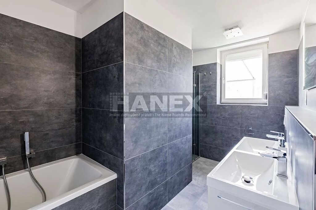 Luxusní kompletně zařízený střešní byt 3+kk (106 m2) s extra velkou terasou (128 m2). Plně klimatizovaný byt se nachází v posledním (2.) patře komorní rezidence s výtahem přímo do jednotky. Interiér bytu tvoří obývací pokoj s jídelním a kuchyňským koutem a vstupem na slunnou terasu s krásným výhledem. Dále jsou zde dvě ložnice, koupelna s vanou, sprchovým koutem, toaletou a samostatná toaleta. Plně vybavená kuchyňská linka v bílém lesku s vestavěnými spotřebiči a snídaňovým barem. Velké množství úložných prostor ve vestavěných skříních na míru v ložnicích i v chodbě. Elektrické rolety v oknech, elektrická markýza na terase. K bytu náleží garážové stání a sklepní kóje (3 m2). Jednotka se nachází v rezidenčním projektu Viladomy Na Vidouli jehož součástí je soukromý parkový areál. Projekt nabízí poklidnou atmosféru v blízkosti golfového hřiště Motol, tenisových kurtů a rozsáhlých parků. Vynikající občanská vybavenost v blízkém okolí a výborná dostupnost nejen do centra města. Pár kroků od domu je stanice autobusu s přímou návazností na linky metra A nebo B. Nákupní a zábavní centrum Metropole Zličín a Galerie Butovice v blízkosti.