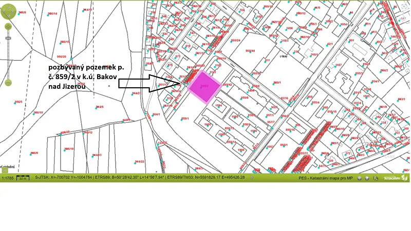 Prodej pozemku p. č. 859/2 o výměře 1334 m2, druhem pozemku ostatní plocha, zapsaného v KN u Katastrálního úřadu pro Středočeský kraj, pracoviště Mladá Boleslav, na LV č. 1569, pro k.ú. Bakov nad Jizerou, obec Bakov nad Jizerou.