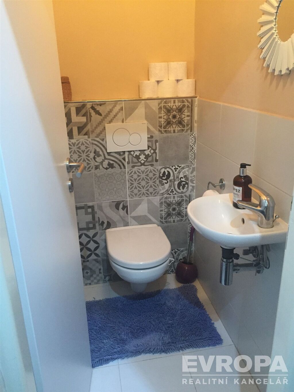 Koupelna se sprchovým koutem a pračkou má vstup z ložnice, samostatné WC s umyvadlem je přístupné z chodby. Podlahy v obytných místnostech jsou plovoucí, v koupelně a na WC je dlažba. Veškeré vybavení a nábytek viditelný na fotografiích zůstává po prodeji v bytě.