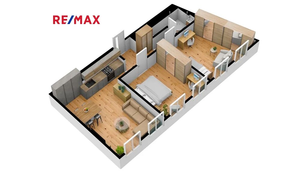 Byt je vhodný pro jednotlivce, pár či spolubydlení.
