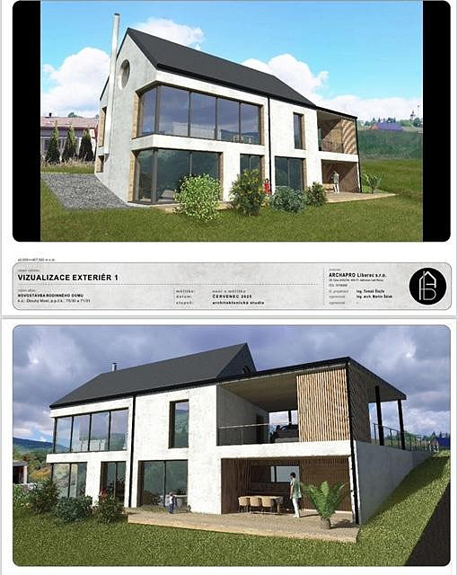 K dispozici vypracovaná architektonická studie pro novostavbu rodinného domu (v ceně pozemku)