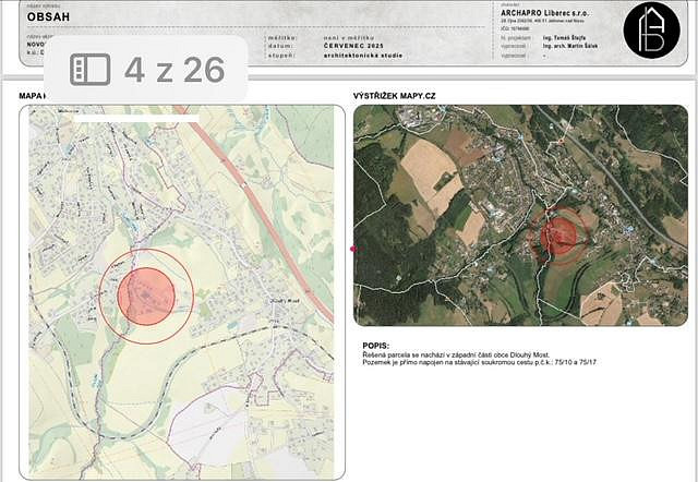 Pozemek se nachází v moderní rezidenční zástavbě rodinných domů klidná část obce s výbornou dostupností do Liberce (cca 10 minut autem).