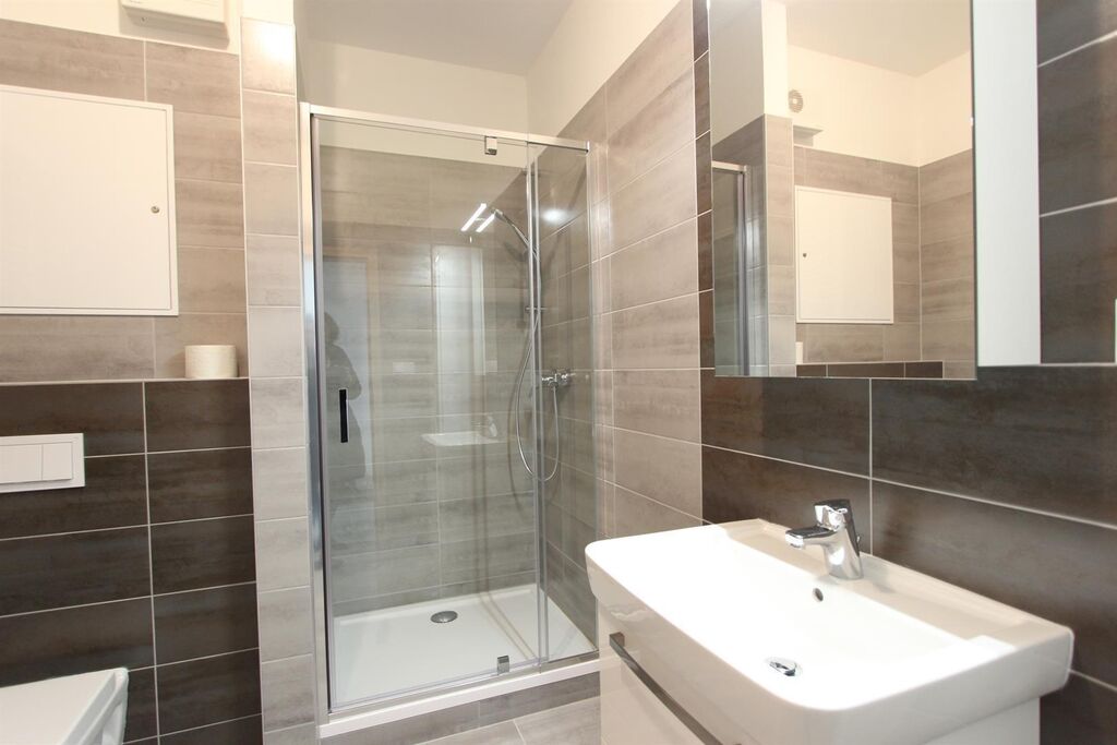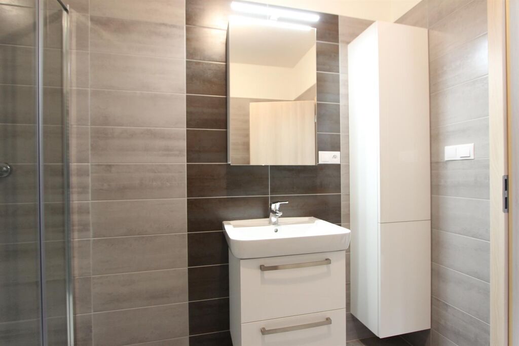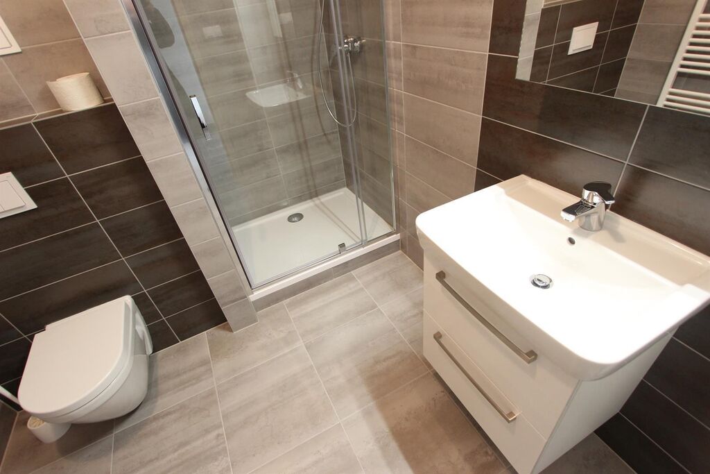 Podlahy - plovoucí laminátová, dlažba. Okna - plastová se stínícími žaluziemi. Koupelna se sprchovým koutem, společná s toaletou, připojení na pračku.