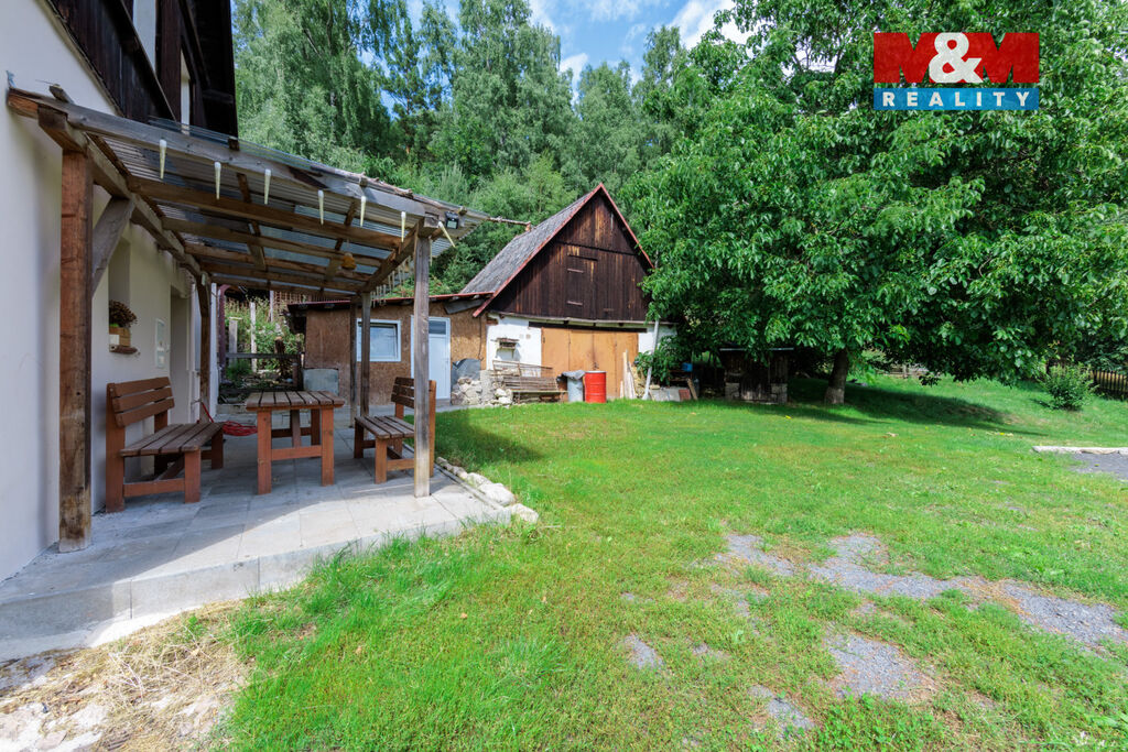 Součástí nemovitosti je rozlehlý pozemek, který nabízí prostor pro zahradničení, odpočinek nebo chov zvířat. Pokud hledáte místo, kde budete mít klid, prostor, volnost a možnost realizovat své plány v souladu s přírodou, tato chata je pro vás.