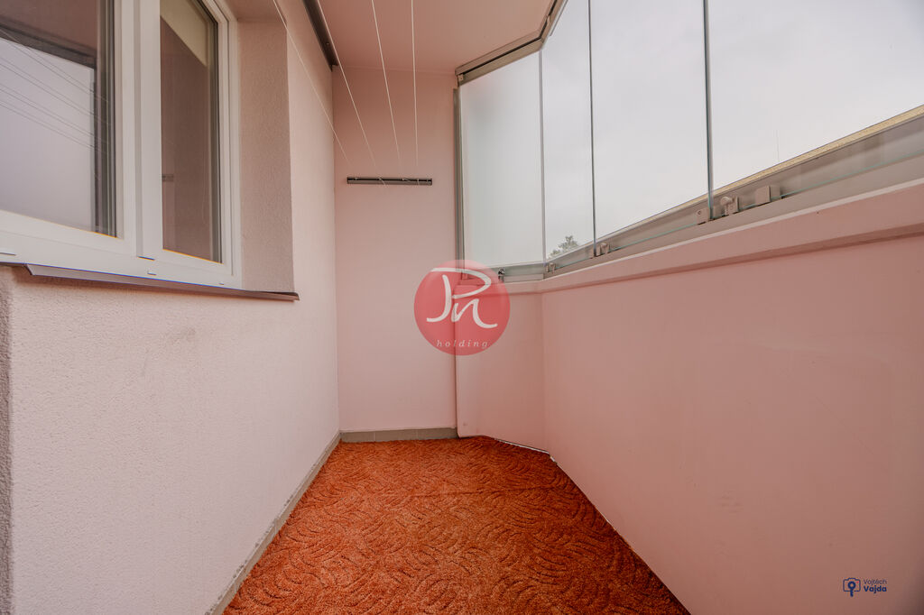 Okno naproti kuchyňské lince zajišťuje dostatek světla pro práci v kuchyni, která je moderní s vestavěnými spotřebiči. Prosvětlené jsou i ostatní pokoje, z nichž první má 14m2 a druhý je rozdělen sádrokartonovou příčkou, tudíž vzniká prostor bytu, který se dá pokládat za 3+1. Tyto „dva“ pokoje mají dohromady metráž cca 23m2 (12m2 a 11m2) a za těmito místnostmi nalezneme velký zasklený balkon situovaný na jih.