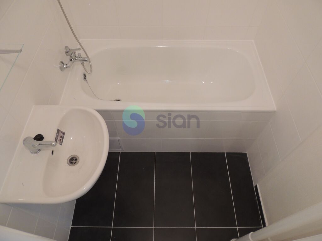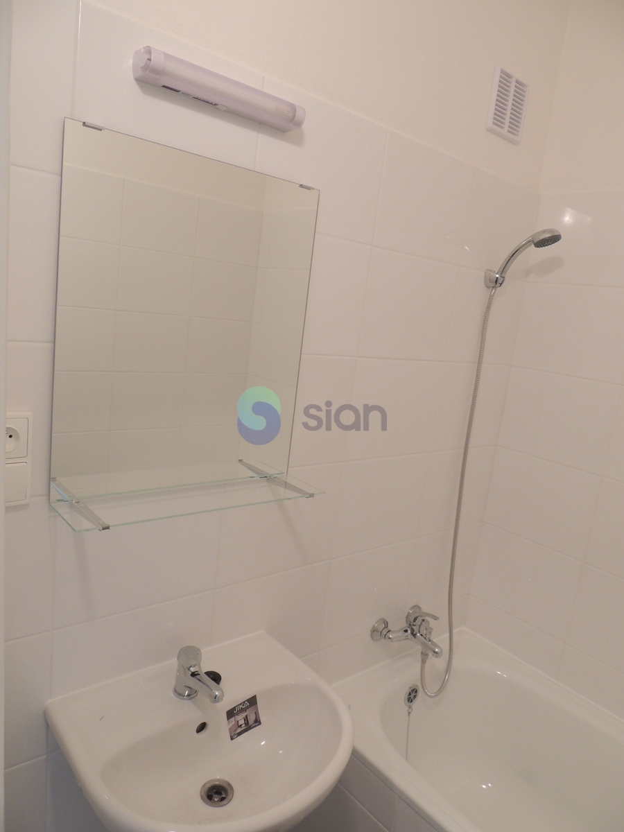 Kuchyň je vybavena kuchyňskou linkou na míru s kombinovaným sporákem a přípravou pro připojení pračky. Koupelna disponuje vanou, umyvadlovou skřínkou, WC je samostatné.