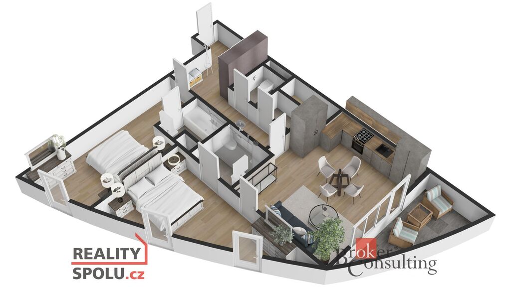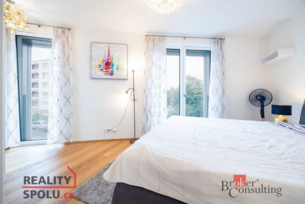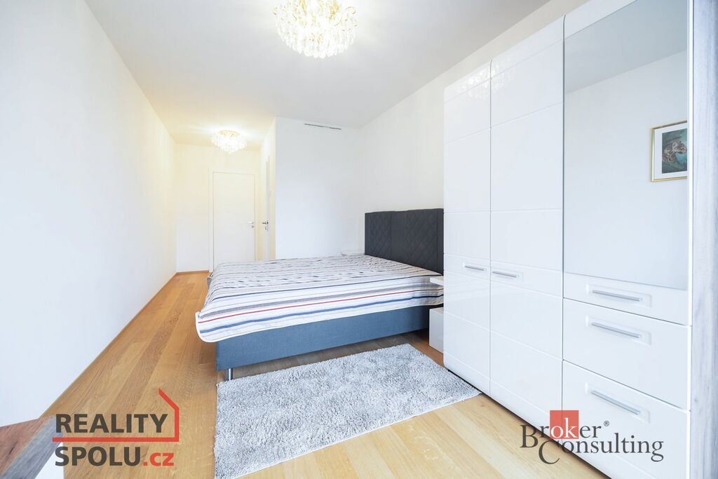 Exkluzivně nabízíme k prodeji luxusně zařízený byt s dispozicí 3kk s lodžií a sklepem v projektu Oliva v Hodoníské ulici v pražské Michli. Byt má užitnou plochu 86m2 a nachází se ve 3. podlaží z cekových 8 nadzemních. Dispozice bytu sestává z prostorné haly, kompletně vybavené kuchyně propojené s obývacím pokojem a jídelnou, dvou ložnic, dvou koupelen, WC, lodžie a komory. Lodžie o velikosti 7m2 je je přístupná přímo z obývacího pokoje. Byt je vybaven ve vysokém standardu, který zahrnuje kvalitní dřevěné podlahy, podlahové vytápění, špičkové zařizovací předměty, dřevěné dveře s bezfalcovými obložkovými zárubněmi a hliníková okna s izolačním trojsklem a žaluziemi. Orientace bytu je na severozápad směrem do klidné části Parku Brumlovka. Designově atraktivní Rezidence Oliva s elegantním atriem a panoramatickými výtahy byla zkolaudována v roce 2022 a nabízí velmi moderní bydlení v zeleni nedaleko metra Kačerov a administrativního a rekreačního centra Brumlovka. Budova je velmi úsporná a disponuje energetickou třídou B díky centránímu vytápění a řízené rekuperaci vzduchu. Celá budova je zároveň bezbariérová. K bytu náleží prostorný sklep o velikosti 6m2 v suterénu budovy. Zároveň je možné k bytu dokoupit parkovací stání v podzemní garáži za Kč 750.000,- Vážným zájemcům tento moderní, světlý a úsporný byt doporučujeme byt k osobní prohlídce.