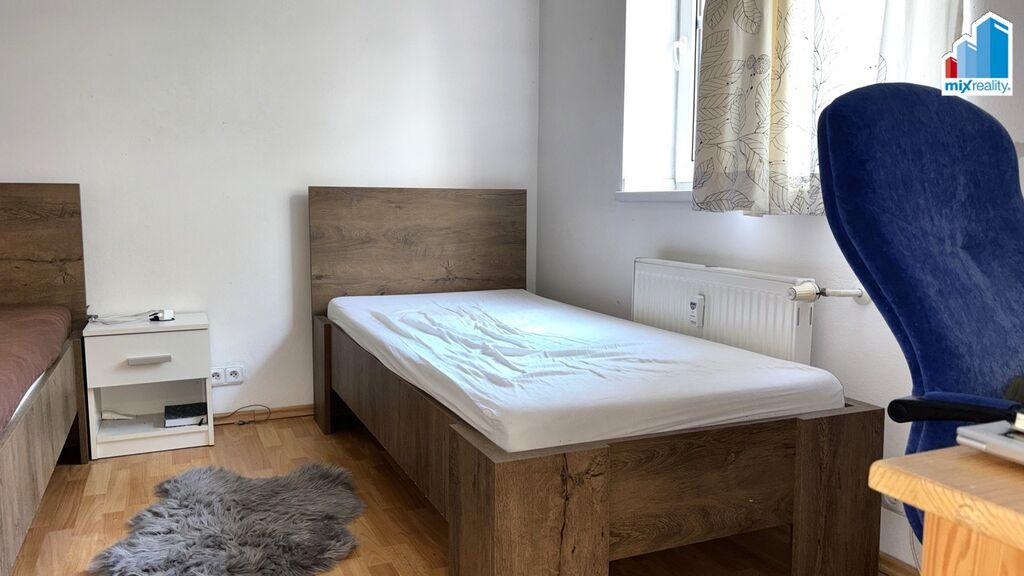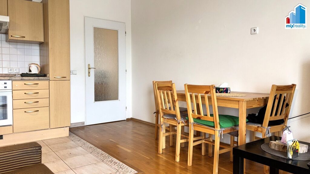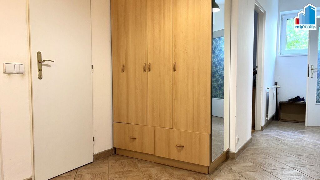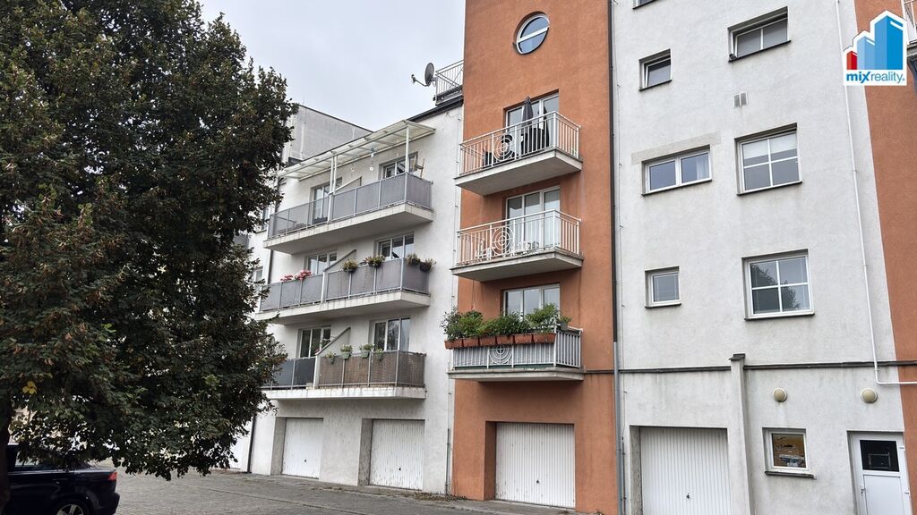 Dispozice bytu: předsíň, chodba, koupelna s vanou, samostatné WC, ložnice a prostorný obývací pokoj s kuchyňským koutem a vstupem na balkon. K bytu náleží také sklepní kóje, vlastní parkovací stání a garáž o velikosti 27 m² s elektřinou.