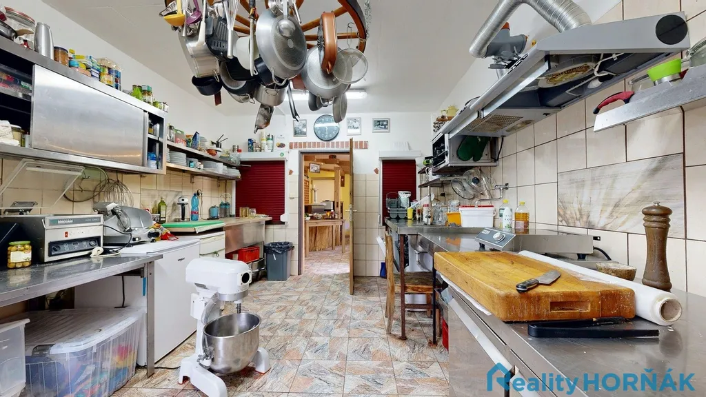 Přízemí domu dispozičně nabízí byt pro majitele 2+0, samostatný ubytovací pokoj se sociálním zázemím, restauraci (52,8 m2) a bar (19,5 m2) s pánským a dámským WC, profesionální kuchyni (22,2 m2), krytou venkovní terasu s udírnou a dvě technické místnosti.