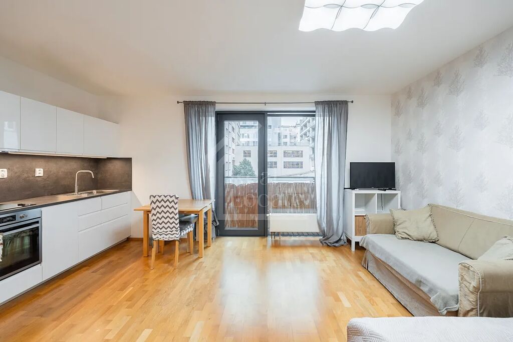 Nabízíme k pronájmu moderní, částečně zařízený byt 1+kk + balkon (44m² + 4m²) k pronájmu, který se nachází v 2 NP novostavby s výtahem v ulici Křižíkova, Praha 8 - Karlín. Dominantou bytu je obývací pokoj s kuchyňským koutem a vstupem na podélný balkón. Dále se v bytě nachází koupelna se sprchovým koutem, toaletou a pračkou s dostatkem místa na případnou sušičku. V předsíni velká vestavná skříň s dostatkem místa na uskladnění i rozměrnějších věcí. Dále k bytu náleží i parkovací místo přímo v domě. Velice žádaná lokalita se snadnou dostupností do centra. Veškerá občanská vybavenost v okolí. Přímo u stanice metra Křižíkova. Vhodné pro max 2 osoby.
