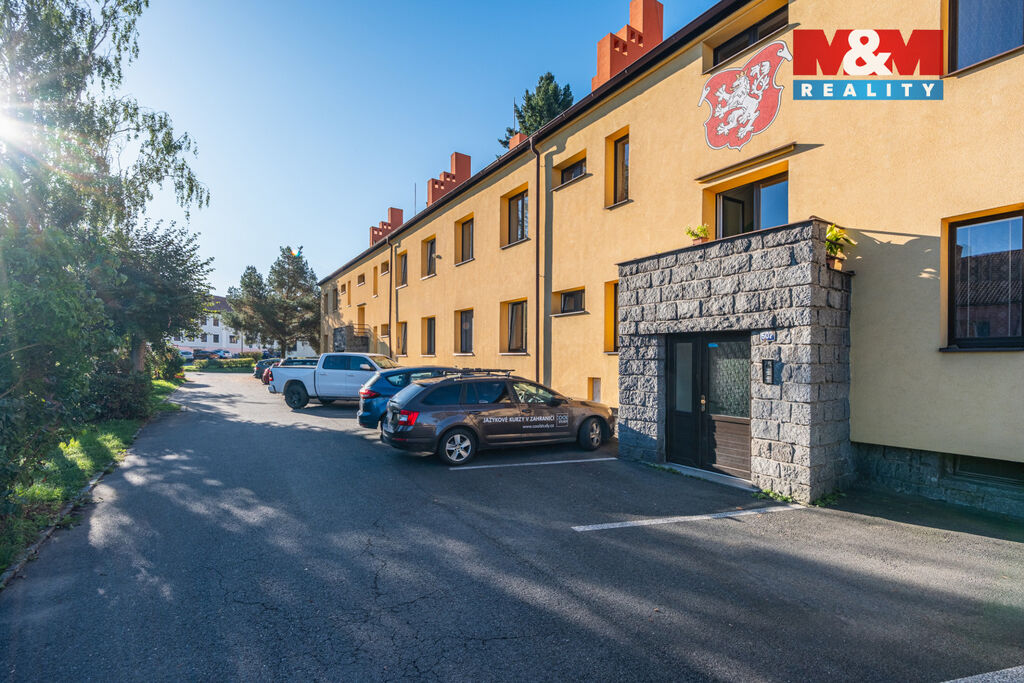 Vytápění zajišťuje společná plynová kotelna – ústřední topení; pro atmosféru a přitopení poslouží zmíněná kamna. K bytu náleží velká sklepní kóje. Parkování pohodlně přímo před domem – místa je dost i pro více aut.