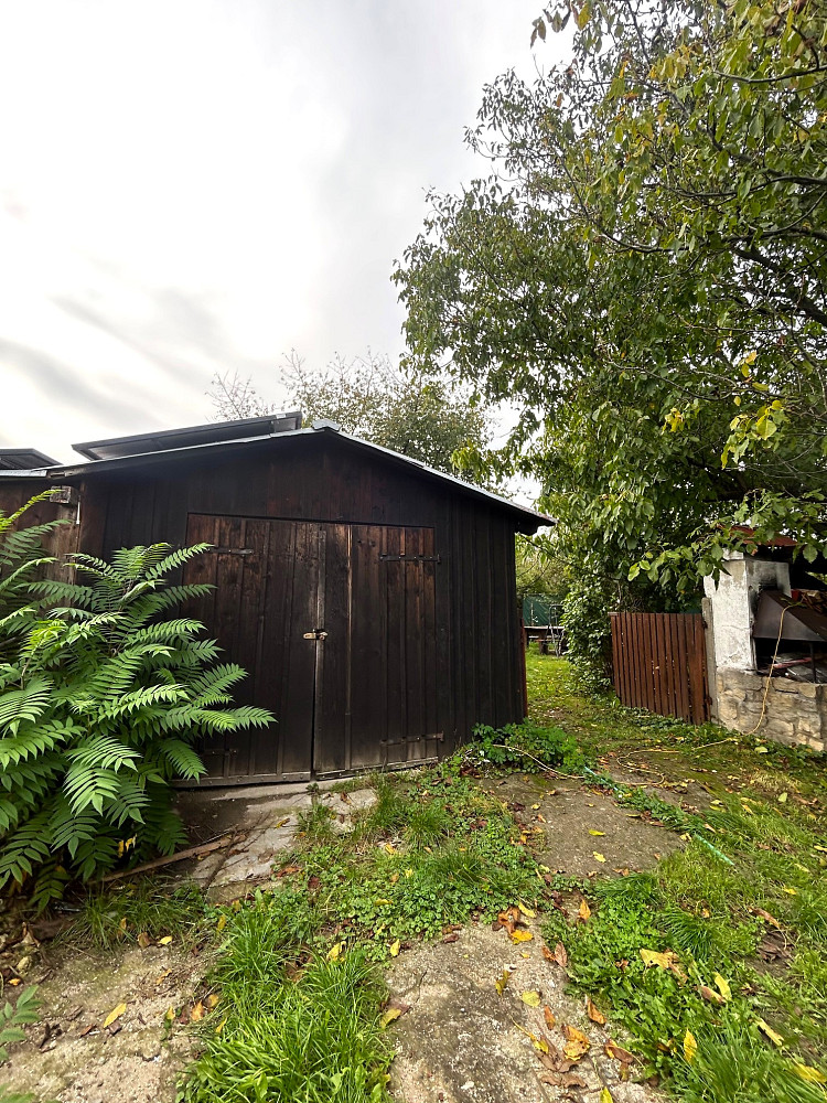 Na zahradě stojí samostatná garáž a dílna/sklad, vhodná pro uskladnění techniky i domácí dílnu. Díky velikosti a charakteru pozemku je zde dostatek místa pro rodinný odpočinek, pěstování či menší hospodářství. Zadní část zahrady je díky zeleni oddělena od okolí a působí klidným dojmem.