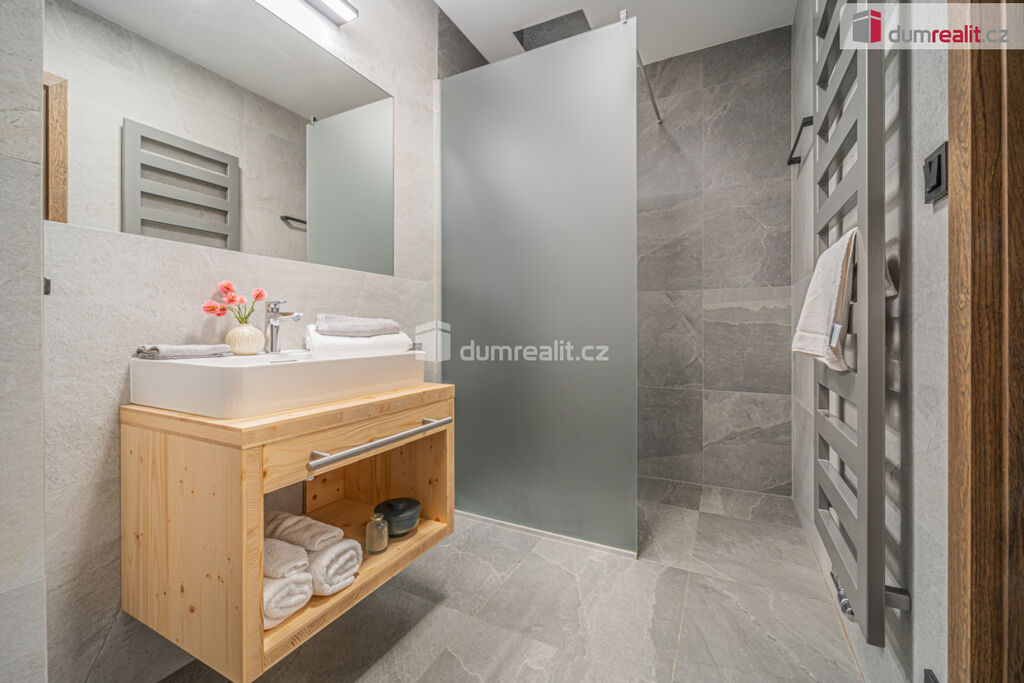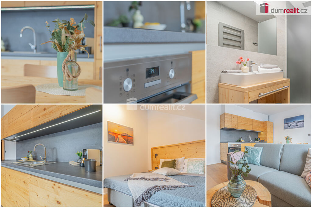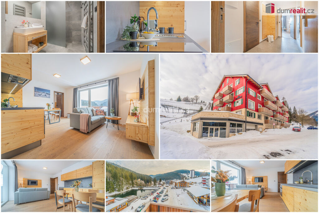možný prodej apartmánu v Peci pod Sněžkou v nově postavené budově. Hledáte-li druhý domov nebo investiční příležitost v lokalitě, kde ceny za poslední roky rostou, pak je tento apartmán nejlepší volbou. Při vstupu do apartmánu na vás na první pohled dýchne horská atmosféra dokreslená dřevěnými prvky. Na druhý pohled si všimnete, jak je apartmán kvalitně udělaný. Je kompletně vybavený vkusným nábytkem, není tedy třeba nic kupovat a zařizovat. Po zimní procházce jistě oceníte podlahové vytápění zabudované pod dřevěnou podlahu. S nádobím si taky nemusíte dělat starosti, umyje ho za vás myčka. Při ranní kávě si vychutnáte pohled na jezero či okolí z vašeho balkonu. Když začne sněžit, můžete to pozorovat z poza francouzských oken. A pokud se budete chtít vydat autem po okolí, nečeká vás žádné škrabání mrazu či shrabávání sněhu, součástí je totiž garážové stání. Sjedete výtahem rovnou do garáží, kde nasednete a vyrazíte. Při návratu ze sjezdovky oceníte sklepní kóji, kam odložíte lyže či další věci. Když se vám nebude chtít vařit, zajdete do restaurace naproti nebo vedle. V létě či na jaře se zde také nudit nebudete. Můžete si vyšlápnout Sněžku nebo se jet projet na kole po jedné z cyklistických tras. V případě pronájmu můžete využít plný servis, kdy je zajištěn jak přísun klientely, tak úklid apod. Byt má podlahovou plochu dle prohlášení vlastníka 48 m² plus balkon. Poplatky včetně fondu oprav jsou 6581 Kč. Byt je ve 4.podlaží a je jižně orientovaný. Ev. číslo: 652645.