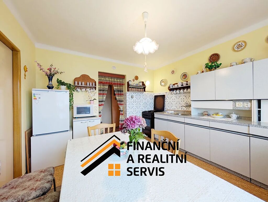 Přízemí: zádveří, vstupní chodba, kuchyně, obývací pokoj, ložnice, komora, koupelna s vanou a WC, vstup do sklepa