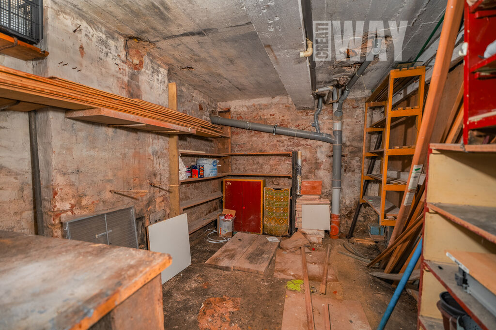 A teď dvě kouzelná slova: dva sklepy. Jestli jste někdy přemýšleli, kam se poděje kolo, zimní výbava nebo krabice s věcmi, které „ještě někdy určitě využijete“, tady dostanete odpověď. A aby to nebylo málo, pod domem je starý protiatomový kryt. Původnímu účelu už sice může sloužit jen jako placebo, protože do něj byly instalovány sklepní okna, ale prostor je to velmi impozantní a i díky dobovému čerpadlu vzduchu a vody je to něco, co rozhodně stojí za zminku.