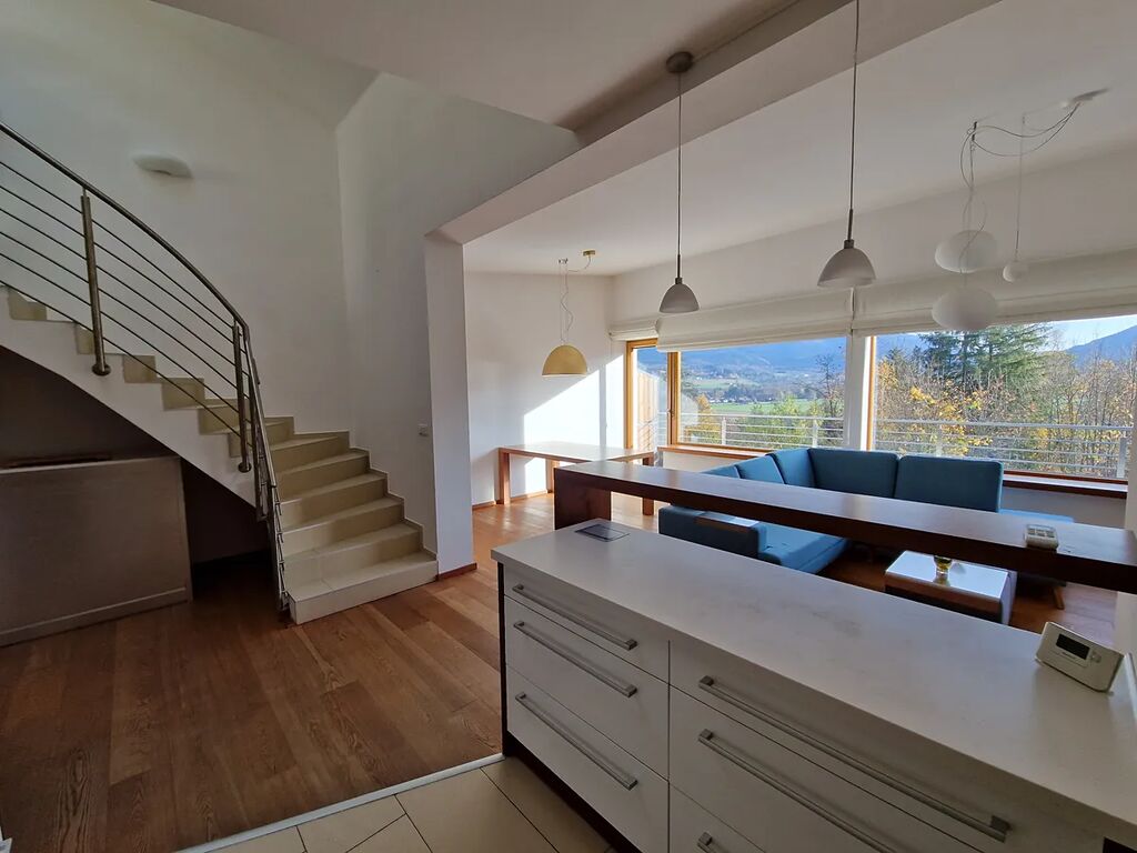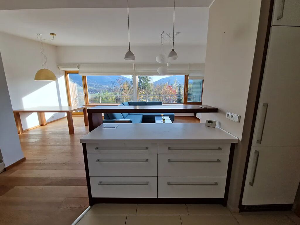 Nabízím k pronájmu nádherný mezonetový byt 113 m2 s prostornou střešní terasou 38 m2 a balkonem 9 m2 a dech beroucím výhledem na panorama Beskyd, který se nachází na malebném místě v obci Čeladná v bytovém domě s pouze 10-ti luxusními byty. Dispozice bytu je 3+kk + pracovna.