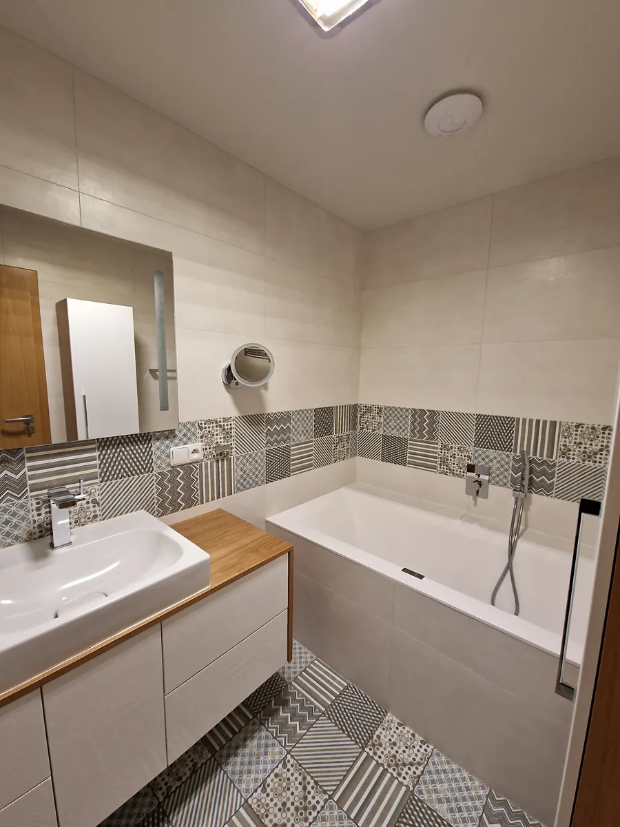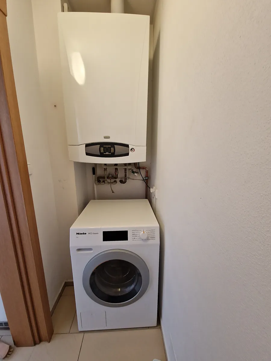 V bytě je klimatizace a vytápění je zajištěno vlastním plynovým kotlem, ve všech místnostech je podlahové topení.