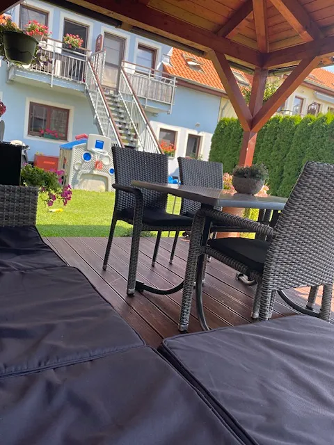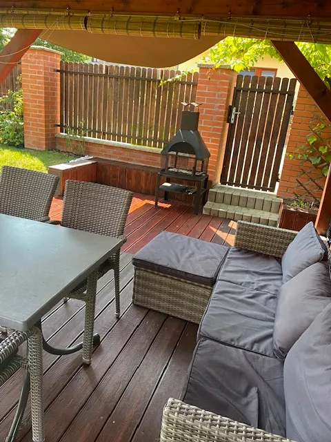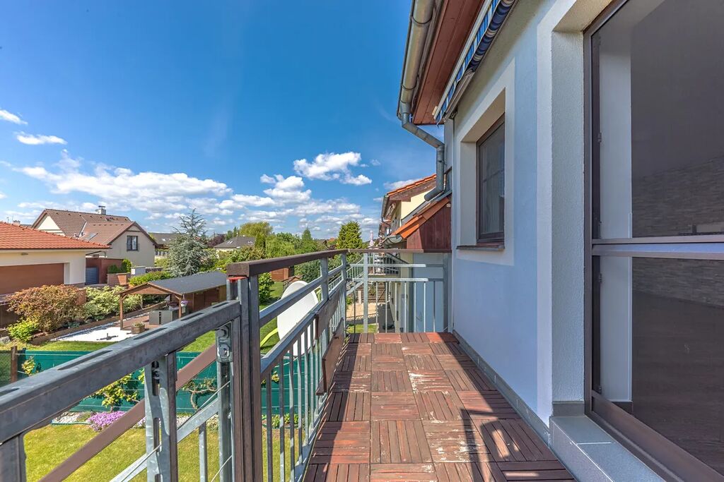Do bytu se jde po schodech, které ústí na balkoně a odtud je vstup do bytu. Stejně je na druhé straně domu vyřešen vstup na zahradu. Zde je instalovaná markýza, která v případě potřeby příjemně stíní. Zahrada je přístupná také z ulice malou brankou.