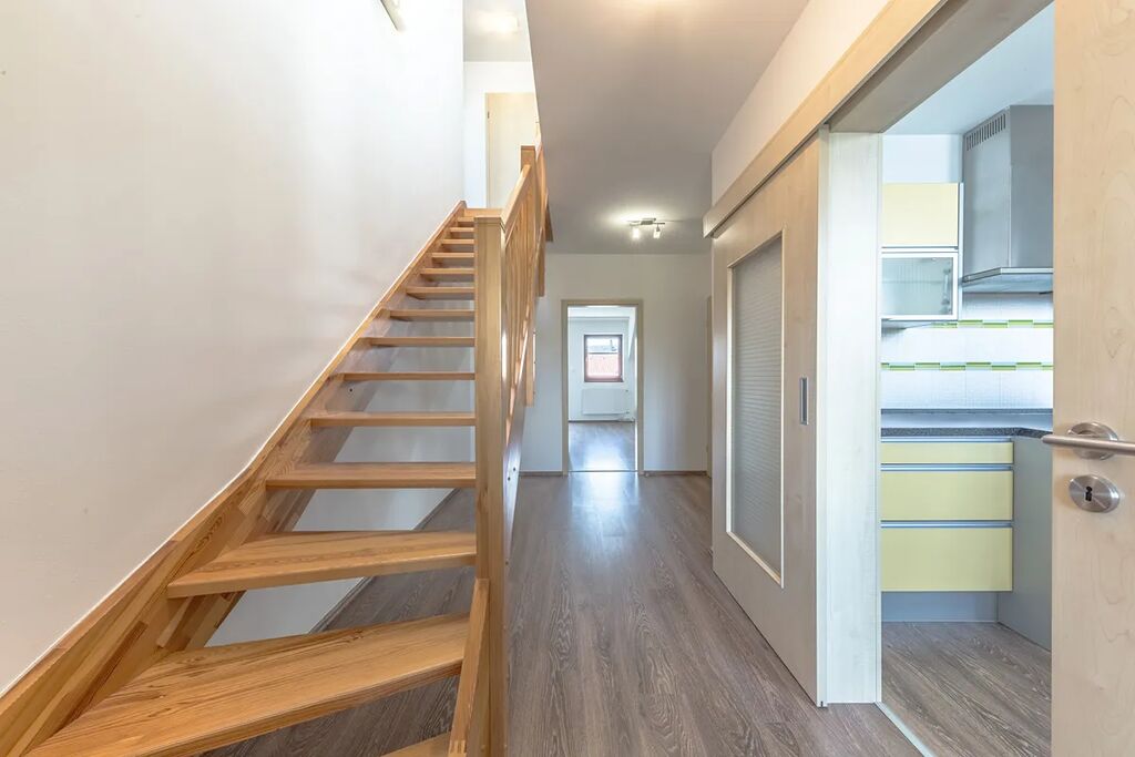 Celý byt je ve vynikajícím stavu a byl velmi pečlivě opečováván. Je mezonetový, umístěn do druhého a třetího nadzemního podlaží.