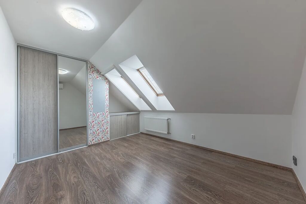 Další nadstandardní vybavení a informace k bytu: klimatizace ovládaná dálkově přes aplikaci, venkovní stínění na střešních oknech, vnitřní žaluzie, sítě proti hmyzu, kondenzační kotel, v koupelně je prostor na pračku i sušičku, najdeme tu i vestavěné skříně a zavedený internet.