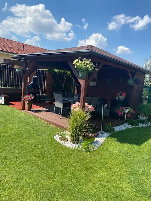 V rodinném domě, kde je provedeno Prohlášení vlastníka, jsou celkem tři byty. Nabízíme k prodeji jeden z nich, o velikosti 4 + 1, kde Podlahová plocha činí 131,37 m2. K celému domu patří i společná zahrada o rozměru 203 m 2, kde se nachází vybavený altán s posezením