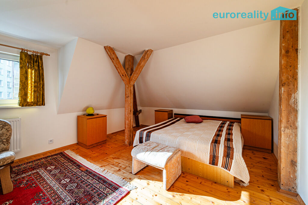 Ve druhém patře je byt se třemi obytnými místnostmi, chodbou, koupelnou a toaletou. Není zařízena kuchyň.