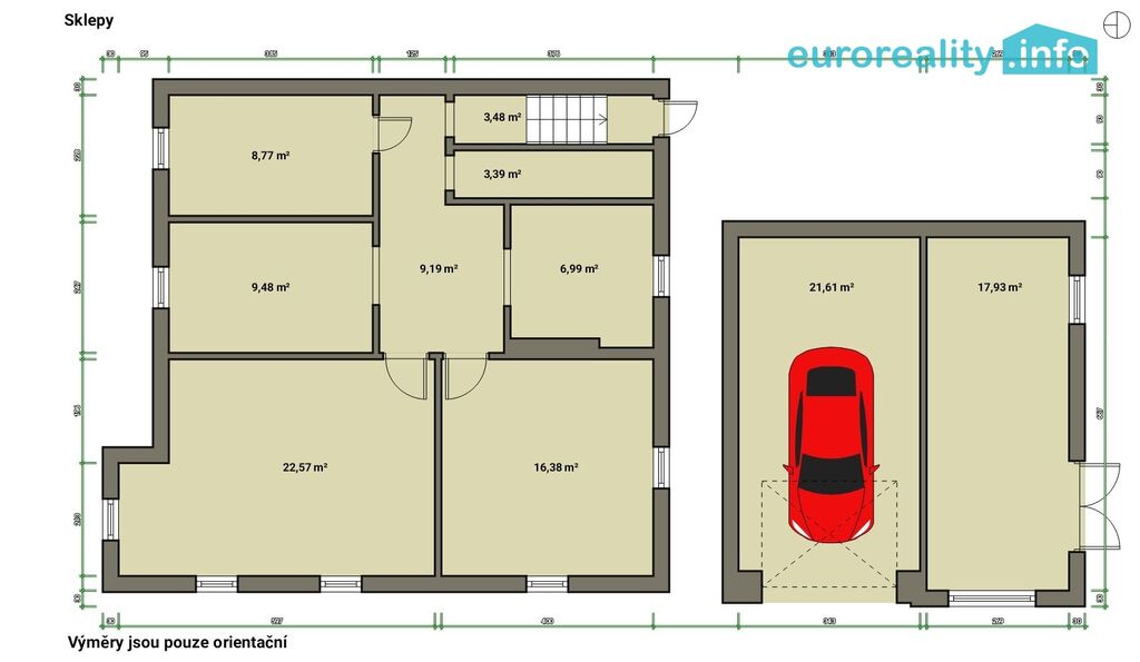 Sklepní prostory jsou členěny do několika prostorných místností. Nachází se zde kotelna, prádelna, sklad.