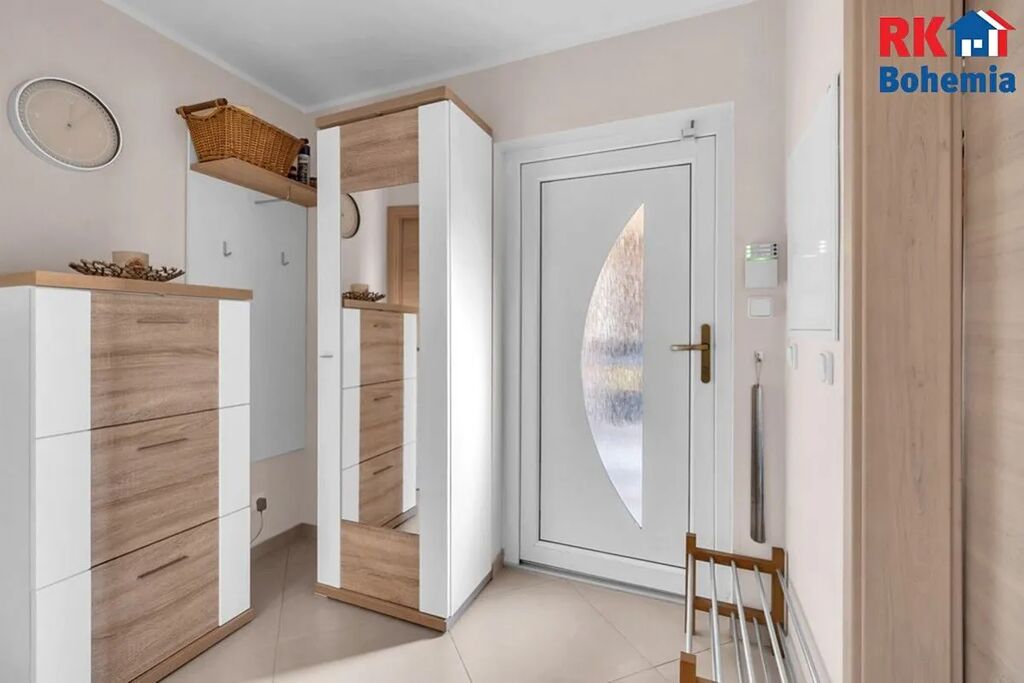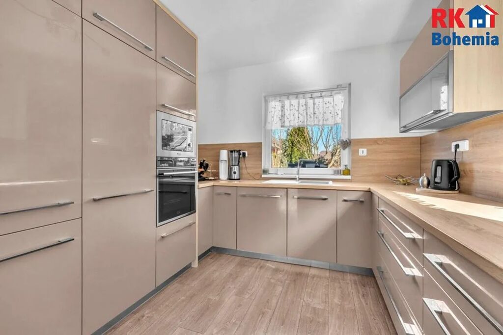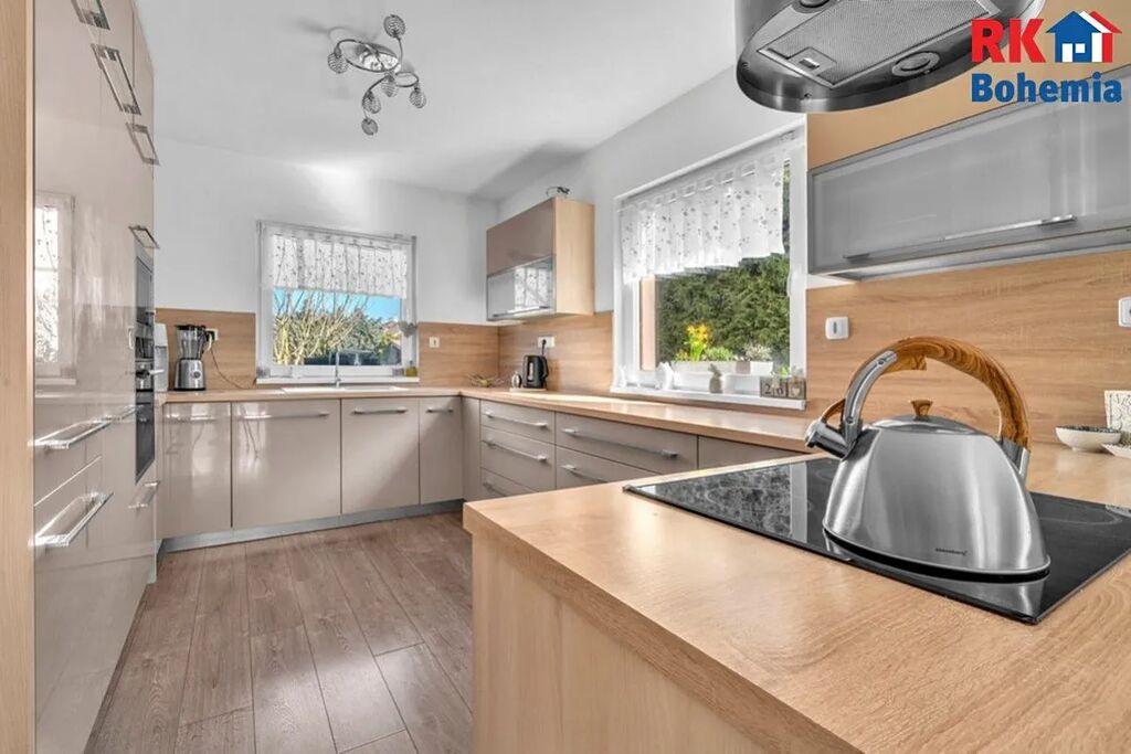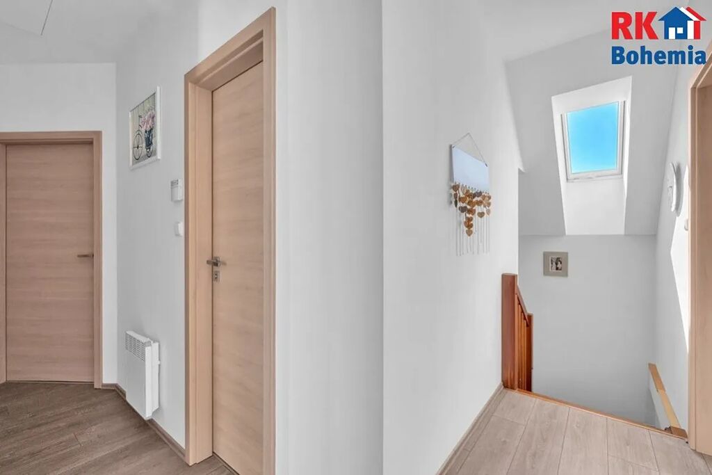 Kuchyňská linka na míru se zabudovanými spotřebiči, plastová okna s trojskly, předokenní rolety integrované ve fasádě. Podlahy plovoucí a keramická dlažba. Vytápění podlahové v přízemí, elektrické v podkroví (alternativní vytápění - vybudován komín s možností instalace krbových kamen). Centrální rekuperace s napojenou klimatizací. Bezpečnostní systém napojený na PCO s výjezdem, optický internet. Oploceno, elektrická vrata s pojezdem.