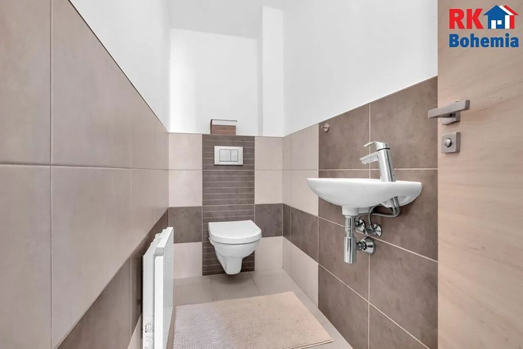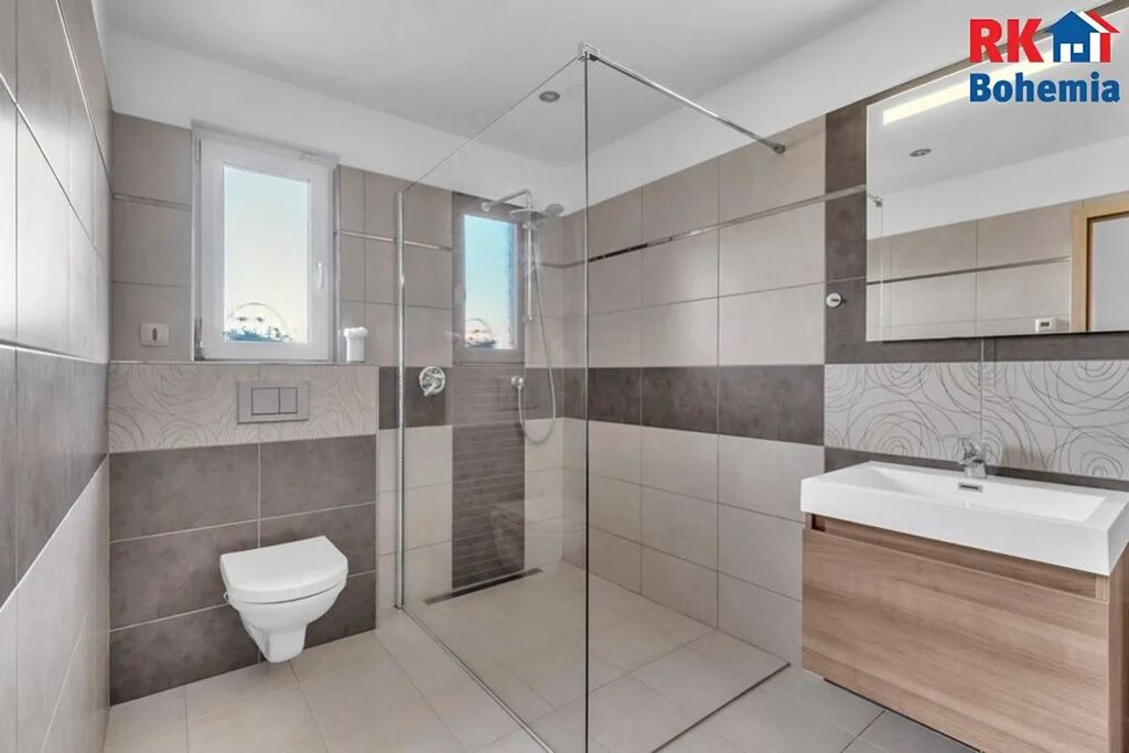 Součástí domu je vytápěná garáž se sekčními vraty na dálkové ovládání.