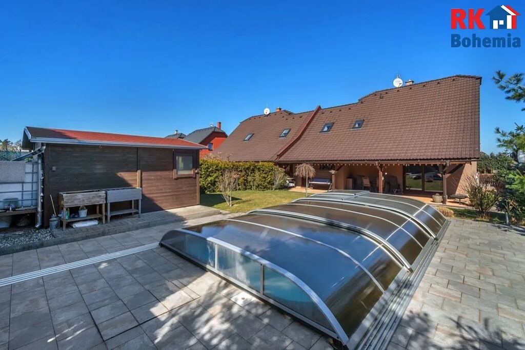 Rodinný dům 5+1 se zahradou, terasou, bazénem a garáží na pozemku 498 m2, Bakov nad Jizerou, Chudoplesy. Hledáte nové moderní bydlení a přímo se nastěhovat bez dalších nákladů a starostí? Přímo pro Vás nabízíme prodej patrového rodinného domu 5+1 s krásně upravenou zahradou, krytým bazénem, zahradním domkem a vytápěnou garáží.