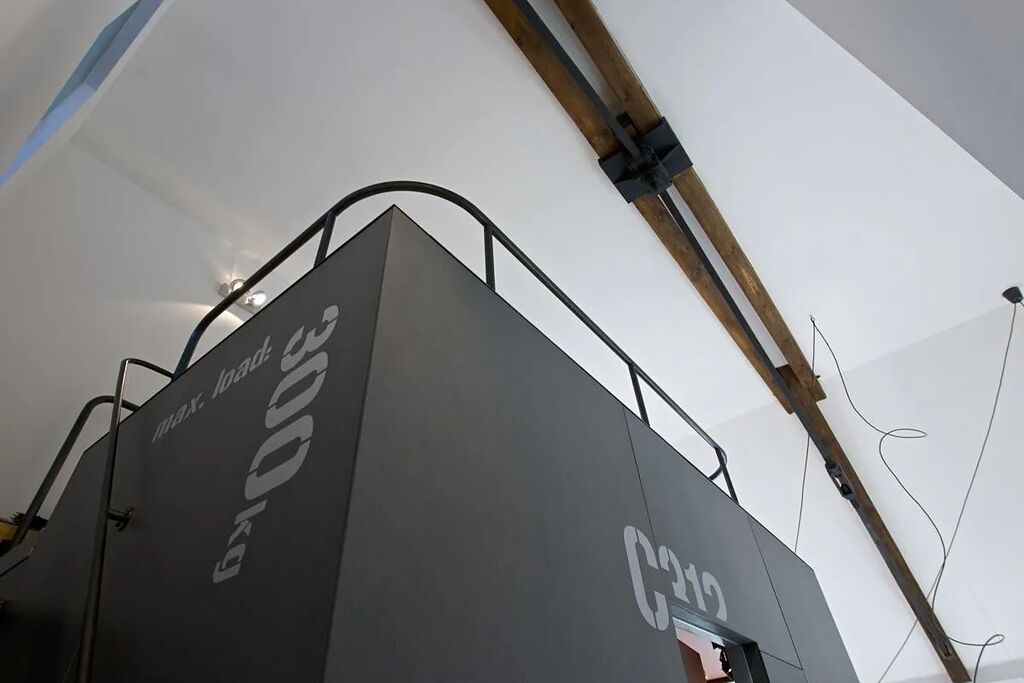 Interiér bytu je moderně zařízený s industriálními prvky velká okna, tři úrovně s galerií. Strop v obývacím pokoji je vysoký 8 metrů, v ložnicích je strop vysoký 5 metrů. Byt se nachází v přestavěné pivovarské budově a je plně zařízený. Ve spodním patře se nachází moderně zařízená kuchyň (indukční deska, trouba, lednice, mrazák, mikrovlnka, myčka), v kuchyni je specifickým prvkem bar s designovými sedadly z tramvaje Tatra T3 z 60.let., kuchyňský kout je spojen s prostorným obývacím pokojem, separátní toaleta a prádelna s pračkou a sušičkou. V horním patře je moderně zařízená koupelna (sprchový kout, vana, toaleta) a dvě samostatné ložnice s šatnou. Z obývacího pokoje vedou schody na designovou galerii. Byt je plně klimatizovaný a má přípojky pro vysokorychlostní internet/TV a satelitní TV.