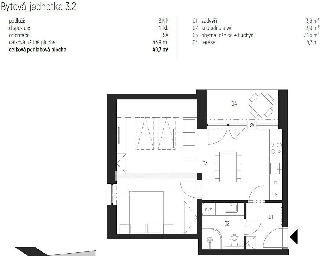 Byt je navržen s důrazem na moderní standardy bydlení a komfort: