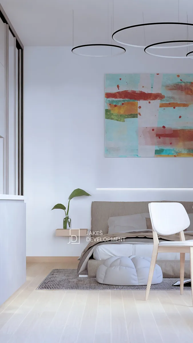 Vytápění je zajištěno radiátory ve všech obytných místnostech i koupelně. Byt bude dokončen s kvalitními vinylovými podlahami, elegantní koupelnou s keramickým obkladem a moderními interiérovými dveřmi. Byt disponuje kuchyňskou linkou s vestavěnými spotřebiči, osvětlení a garnýže. Po dohodě je také možnost pronajmout parkovací stání za 2000,-Kč / měsíčně. K pohodlí obyvatel domu přispívá také společné venkovní posezení ideální pro odpočinek, a praktický uzamykatelný box na kola s kapacitou až 10 kol.