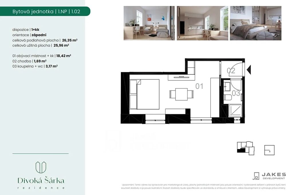 Nabízíme k pronájmu moderní a útulný byt 1+kk o podlahové ploše 26 m², který se nachází v 1. nadzemním podlaží s orientací na západ. Hledáme dlouhodobého nájemníka (nekuřák, bez exekucí).