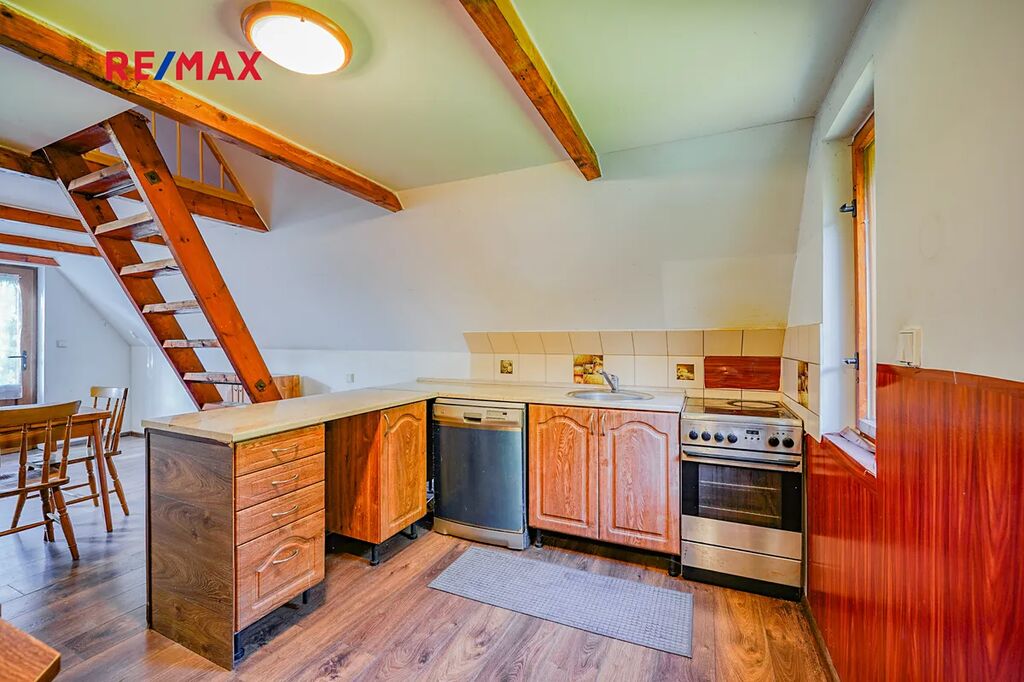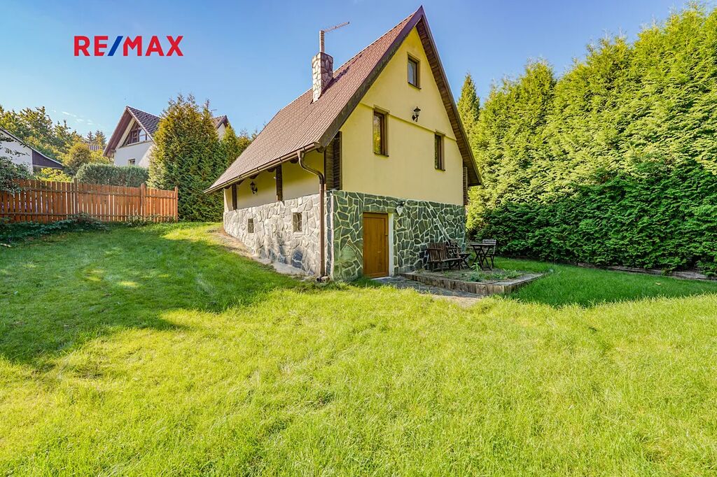 Chalupa je rozložena do tří podlaží, v 1. podlaží se nachází vstupní chodba a místnost kterou lze využít například jako dětský pokoj. Ve 2. podlaží se nachází obývací pokoj s krbem, kuchyní a koupelnou se sociálním zázemím. Ve 3. podlaží nalezneme další pokoj který lze využít například jako dětský pokoj, ložnici a nebo pracovnu. Dále je na zahradě k dispozici polozapuštěný bazén a domek pro zahradní náčiní. Díky vysokým vzrostlým stromům po obvodu pozemku nabízí zahrada dostatek klidu a soukromí. Chalupa prošla 10 let zpět kompletní rekonstrukcí včetně zateplení, je vybavena plastovými okny s dvojskly, elektroinstalací kompletně v mědi, plovoucími podlahy a střechou z plechové taškové krytiny. Vytápění je zde řešeno pomocí krbu a ohřev vody pomocí elektro bojleru.