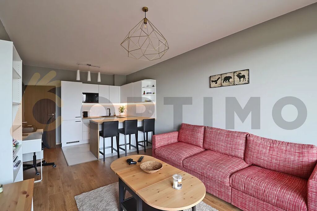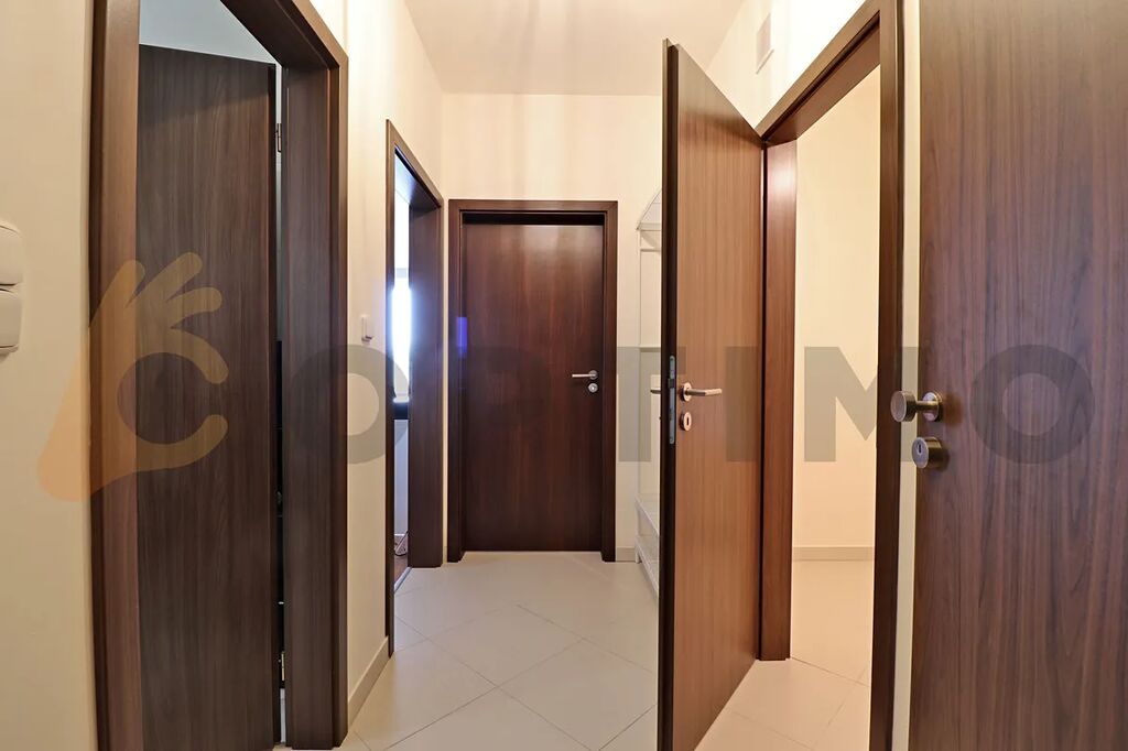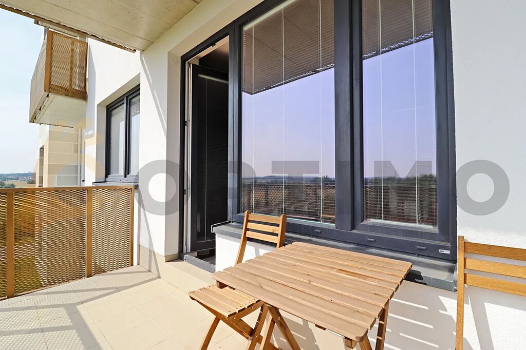 Byt s volným výhledem do zeleně a daleké krajiny v atraktivním místě poblíž parku, obchodů a služeb na okraji Prahy. Byt je kompletně zařízen a připraven na nové majitele, vhodné i na okamžitý pronájem se kterým Vám rádi zdarma pomůžeme. V obývacím pokoji (23,1 m2) kuchyňská linka na míru s integrovaným stolem s barovými židlemi a vestavěnými spotřebiči - lednice s mrazákem, sklokeramická varná deska, digestoř, el. trouba. Dále sedačka a televizní stolek. V koupelně (6,5 m2) vana, umyvadlo, otopný žebřík toaleta a pračka. V komoře (3,1 m2) sušička. V ložnici (14,8 m2) manželská postel s úložným prostorem a skříně. Chodba (4,2 m2).