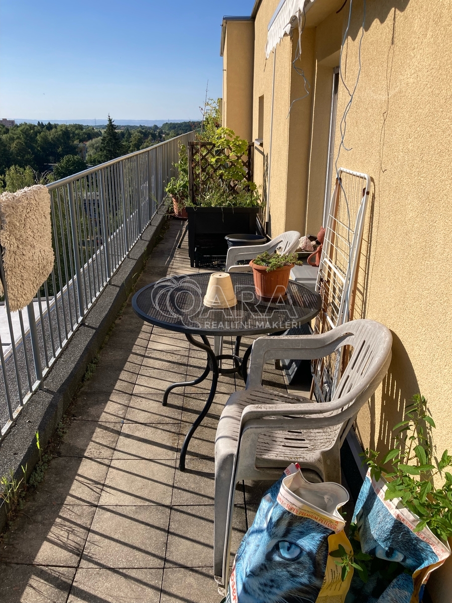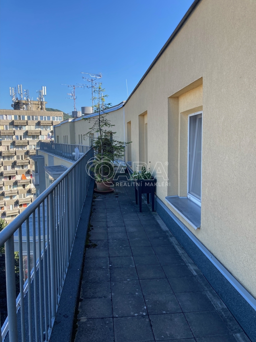 Tento byt o dispozici 4+kk má cca 71 m2. Disponuje prostornou terasou, ze které je krásný výhled a můžete zde relaxovat nebo si zbudovat mini zahrádku přímo ve městě.