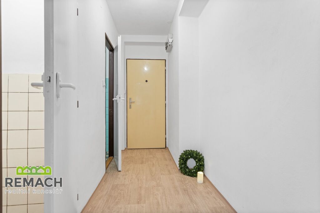Po vstupu do bytu se ocitnete ve vstupní chodbě, která slouží jako předsíň.