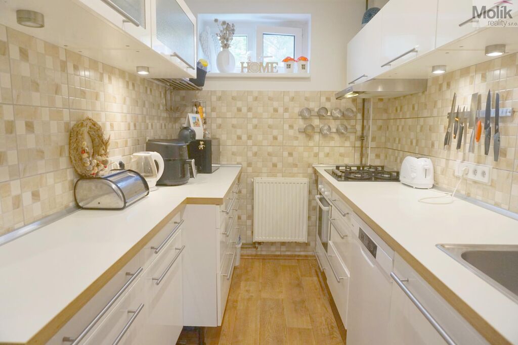 V rámci bytu se nachází prostorná obývací místnost, která je ideální pro posezení s rodinou nebo přáteli, jejíž součástí je rovněž jídelní kout.. Dále jsou zde dvě samostatné ložnice, což poskytuje dostatek soukromí pro všechny členy rodiny. Kuchyně je vybavena moderními spotřebiči a nabízí dostatek úložného prostoru a pracovní plochy pro potřeby každé domácnosti. V koupelně je k dispozici vana, umyvadlo a toaleta.