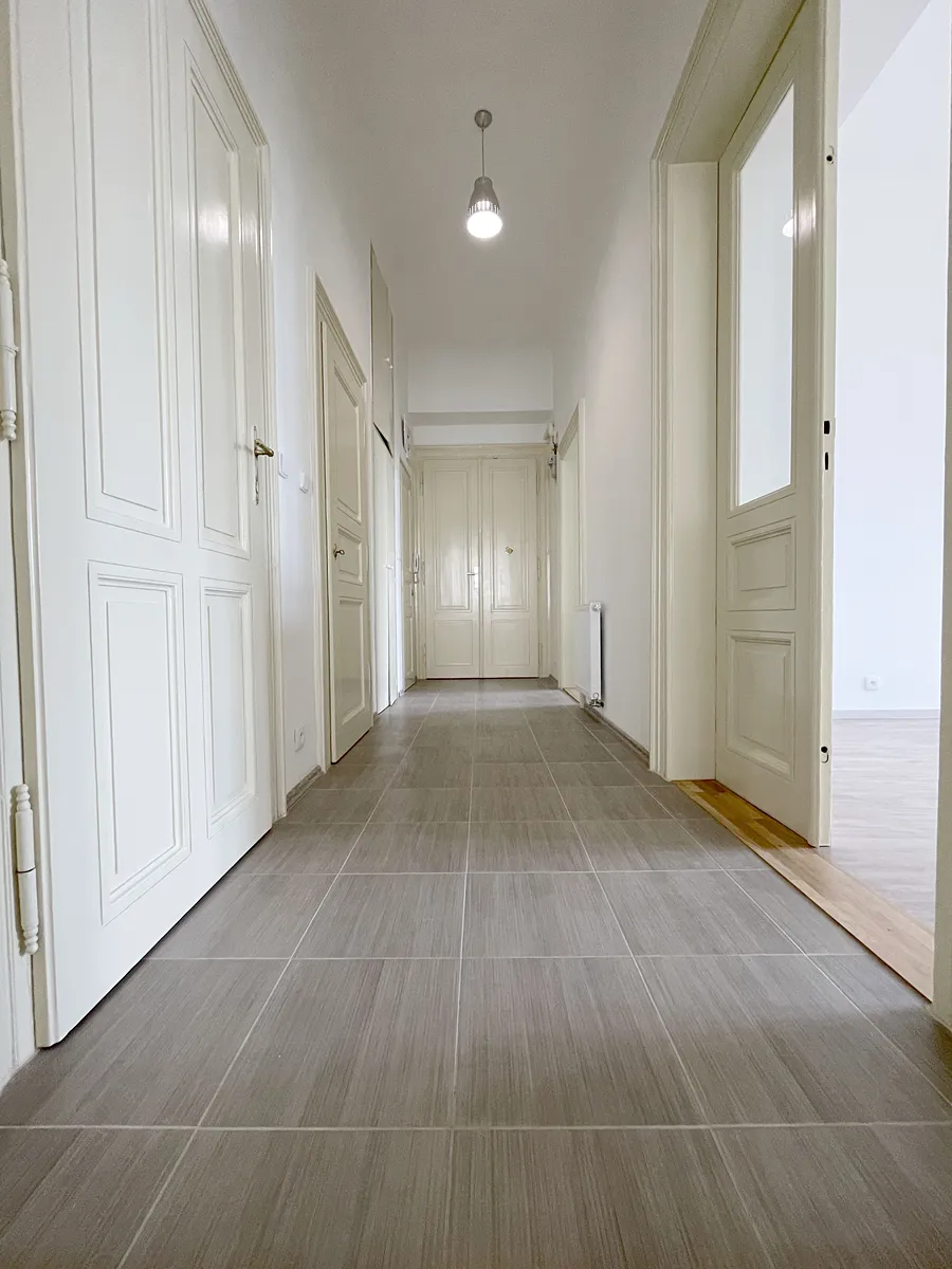 Nabízíme Vám pronájem nezařízeného, prostorného a světlého bytu 3+1 s balkónem o celkové ploše 104 m2 ve 3. patře zděného čtyřpatrového domu s výtahem.