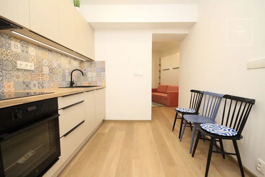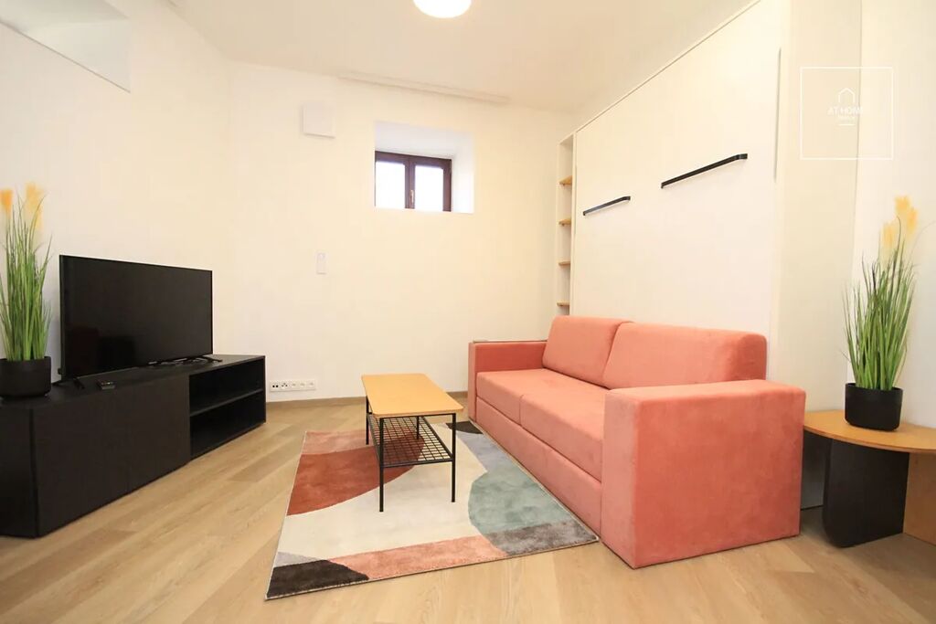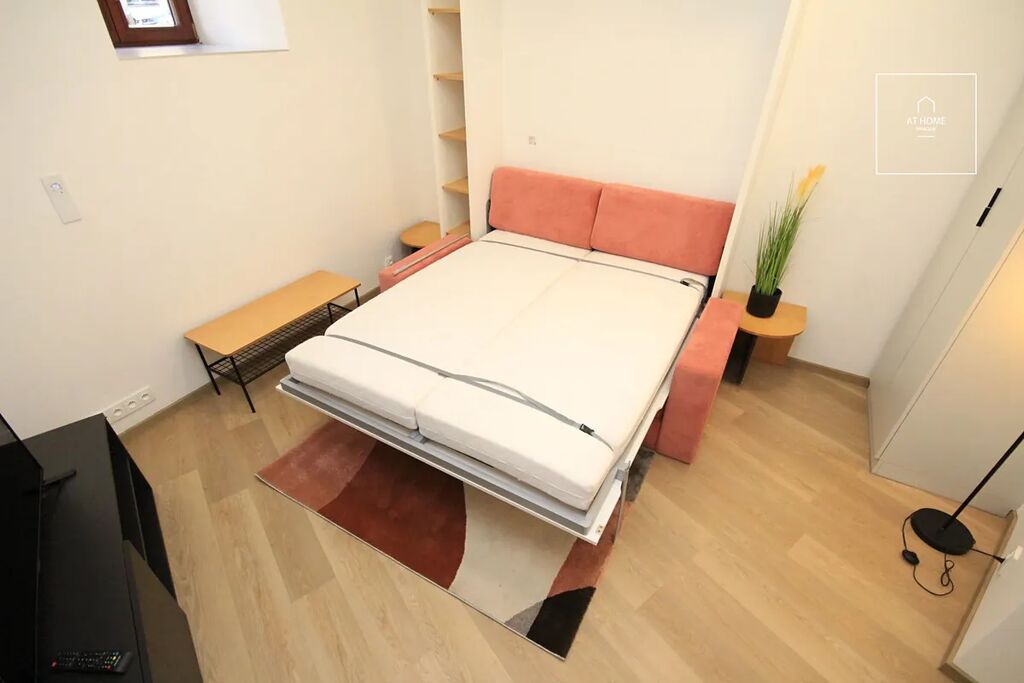 Velice hezký, úplně nový, zařízený atelier v suterénu právě zrekonstruovaného domu, Praha 3 - Žižkov, ulice Milíčova. 33m2: pokoj s rozkládacím gaučem, samostatně plně vybavený kuchyňský kout. Lednice, trouba, myčka, indukční varná deska. Odemykání domu i bytu na kód, Internet Vodafone 1Gb v ceně nájmu (online regulace topení), podlahové topení, elektrický kotel, rekuperace. K dispozici sklep 1,3m2. V okolí veškerá občanská vybavenost - supermarket, lékař, bary, restaurace a kavárny. Výborná dopravní dostupnost TRAM linky 9,15,26. V docházkové vzdálenosti Vítkov, Parukářka. Poplatky 4.000,-Kč. Energetický štítek G (údaj bude aktualizován).