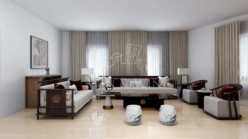 Vizualizace ukazuje již předběžnou podobu kompletní rekonstrukce jedné bytové jednotky. V dvorní přístavbě bazén a jacuzzi.
