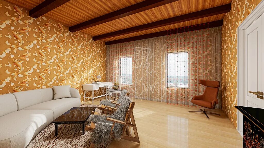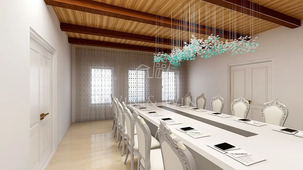 Vizualizace ukazuje již předběžnou podobu kompletní rekonstrukce přízemí, které bude obsahovat recepci, retro pokoj, vstupní halu, něžný pokoj, pracovnu, asijský salónek, bar a zázemí. V dvorní přístavbě bazén a jacuzzi.