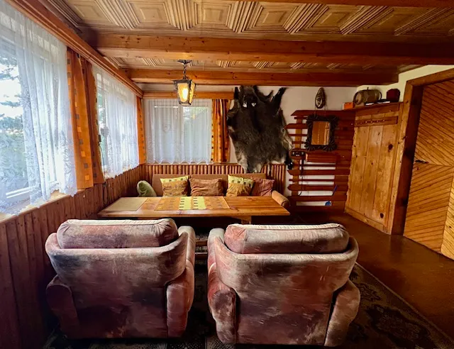 Nemovitost má sklep 6 m2. V přízemí chaty je zasklená veranda, obývací pokoj, kuchyň, ložnice a místnost s umyvadlem. V patře jsou 2 pokoje. Prodej je možný včetně vybavení.
