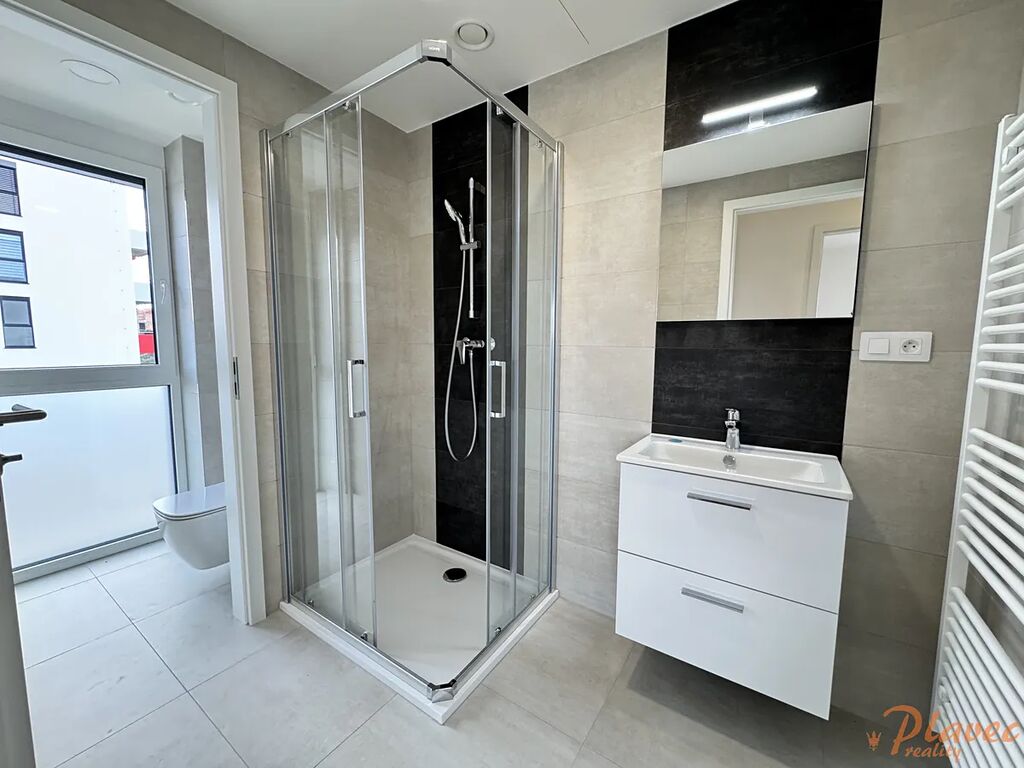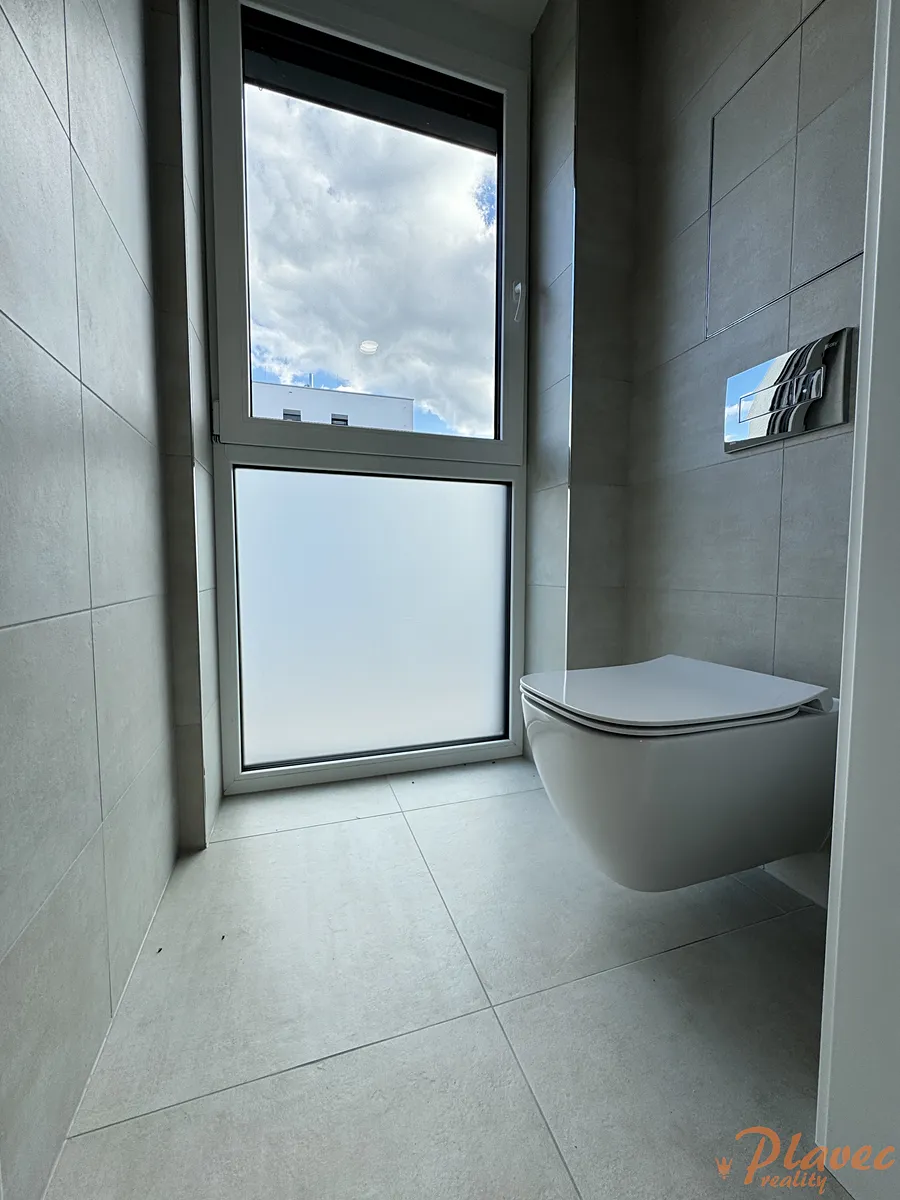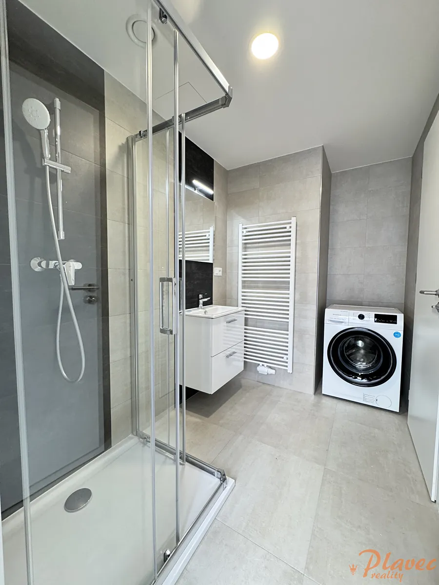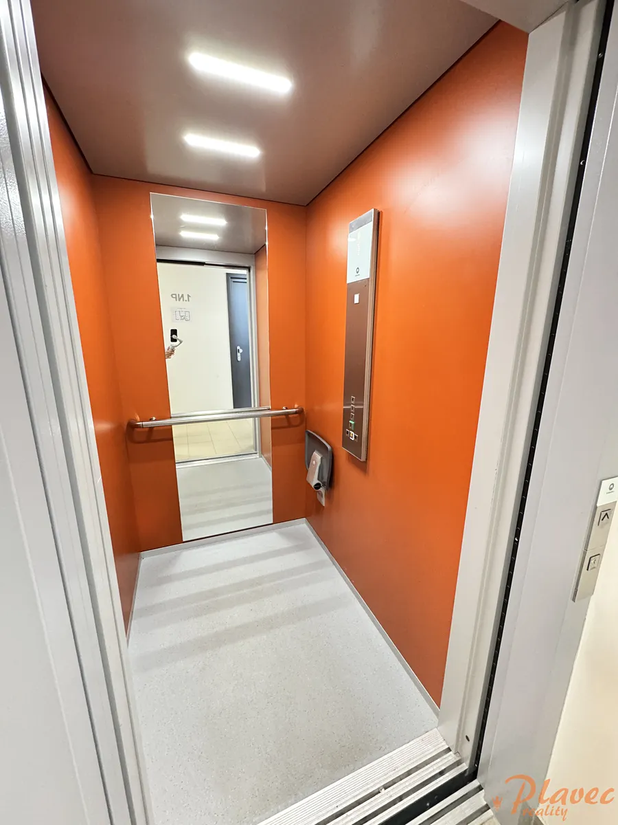 Byt se nachází v 1. patře/ 3 s výtahem. Byt je úplně nový, zatím v něm nikdo nebydlel. Má bezpečnostní dveře, venkovní rolety na dálkové ovládání. Dále je zde kuchyňská linka vybavená elektrickou troubou, indukční deskou, myčkou, lednicí, mrazákem, mikrovlnkou (vše zn. MORA) a v koupelně je také pračka (zn. PHILCO). Orientace obývacího pokoje je na Jiho - Západ.