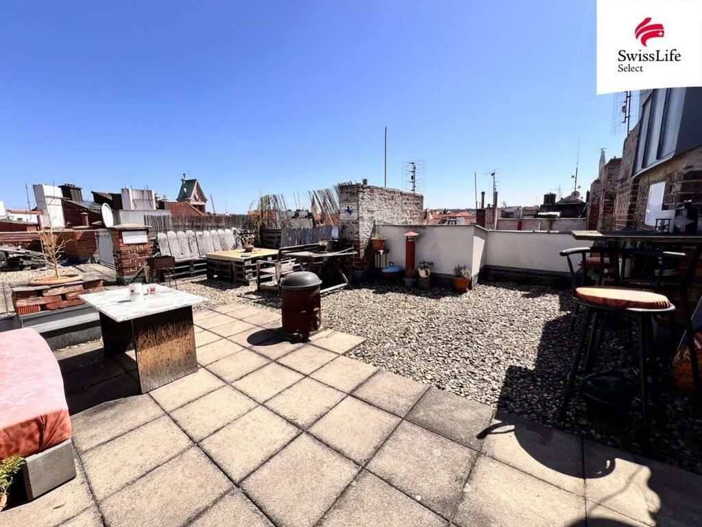 Nabízíme pronájem bytové jednotky v 4NP dobře udržovaného bytového domu o dispozici 1kk 65 m2, se sdílenou terasou cca 30 m2, na adrese Borská 47- 1 minutu od zastávky Plzeň - Jižní Předměstí. Byt sestává z obývací místnosti, z kuchyně, předsíně, koupelny s WC, mezonetového prostoru, komory. Bonusem tohoto bytu je terasa na střeše domu a výměře cca 30 m2 sdílená se sousedním bytem. Okna střešní plastová - orintace jihozápad - ideální pro milovníky tepla. Topení řešeno plynovým kotlem s časovým termostatem. Teplá voda z boileru. Velmi nízké náklady na vytápění.