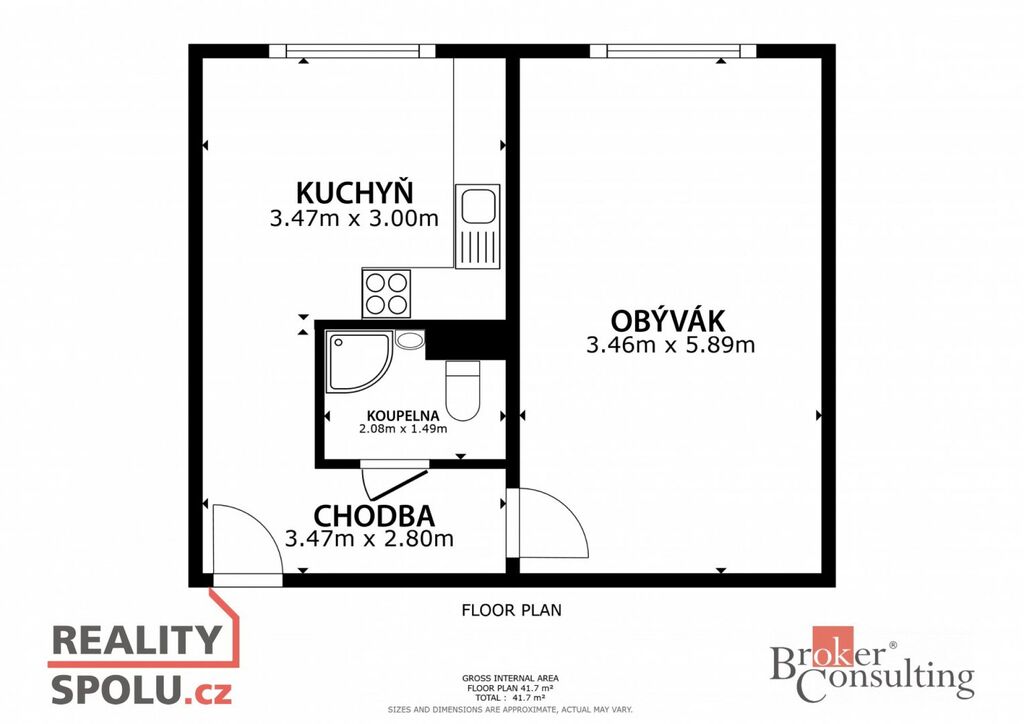 Byt se skládá s prostorné kuchyně s novou kuchyňskou linkou, obývacího pokoje, koupelny se sprchovým koutem a společným WC.