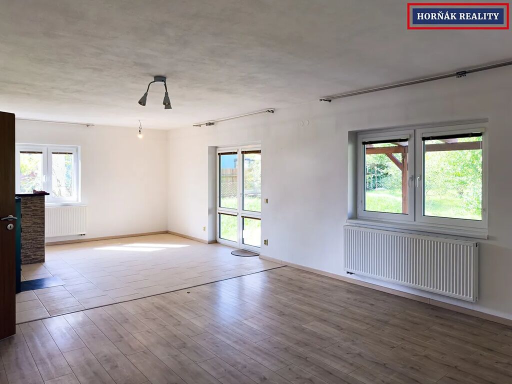 Samostatně stojící patrový dům s obytným podkrovím je obklopen velkou zahradou a skýtá spoustu prostoru a soukromí. Nachází se v obytné zástavbě na okraji obce s asfaltovou cestou. Prostor u domu nabízí parkování pro 2-4 auta. S přáteli můžete posedět pod dřevěnou pergolou o rozloze 28m2 přilehlou k domu s odpočinkovým výhledem do zahrady. V zadní části pozemku stojí zahradní domek s připojením na elektřinu.