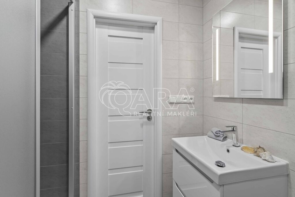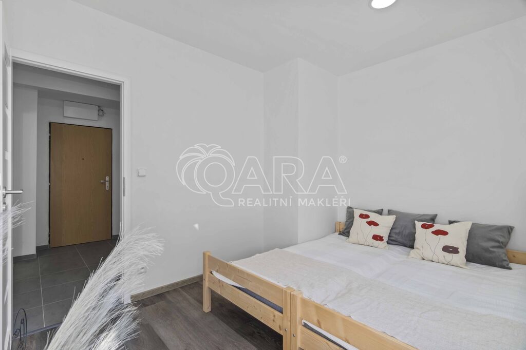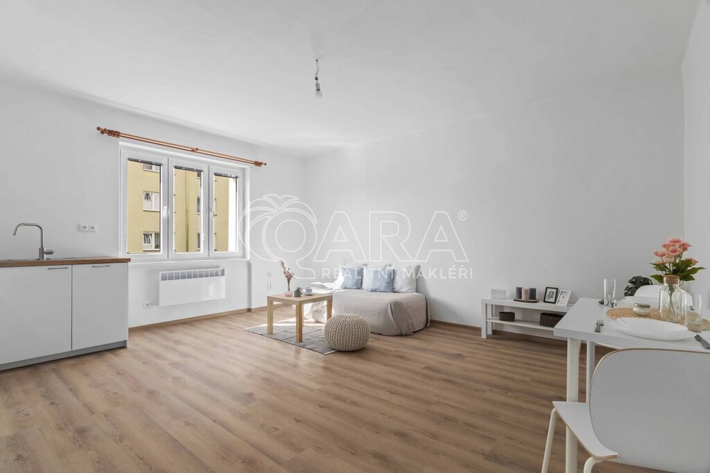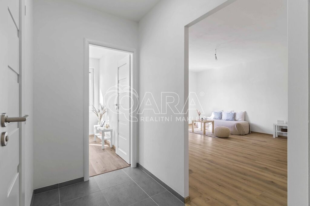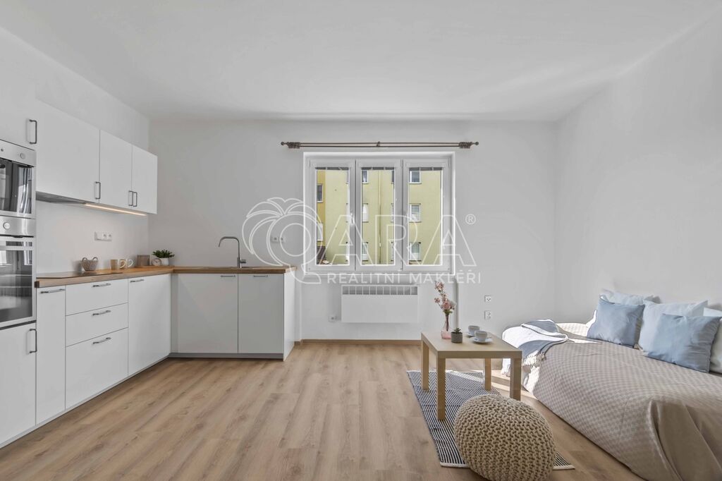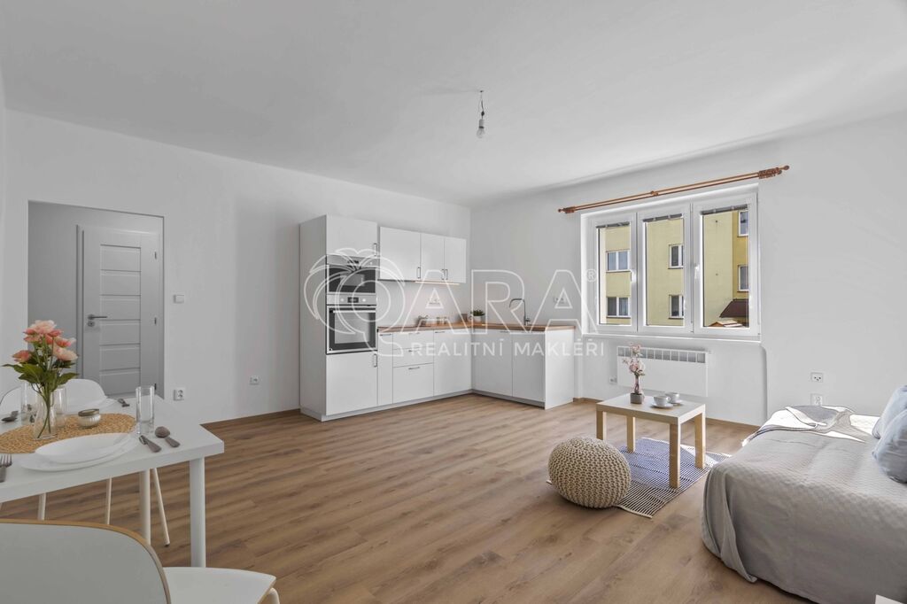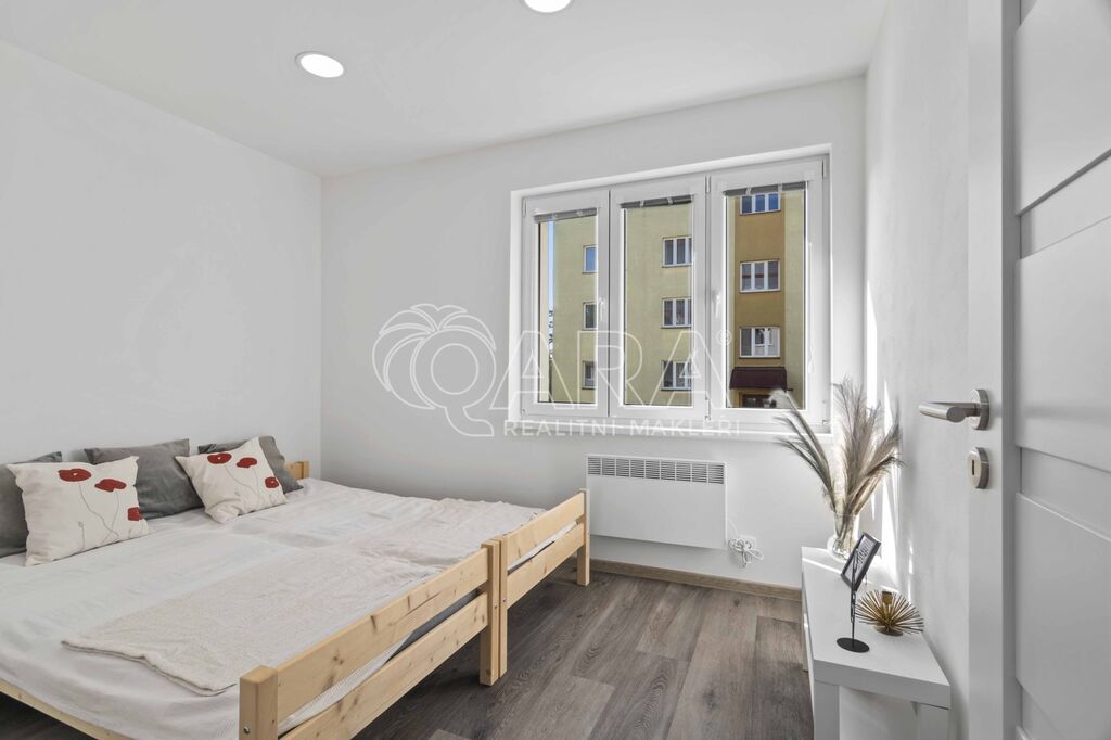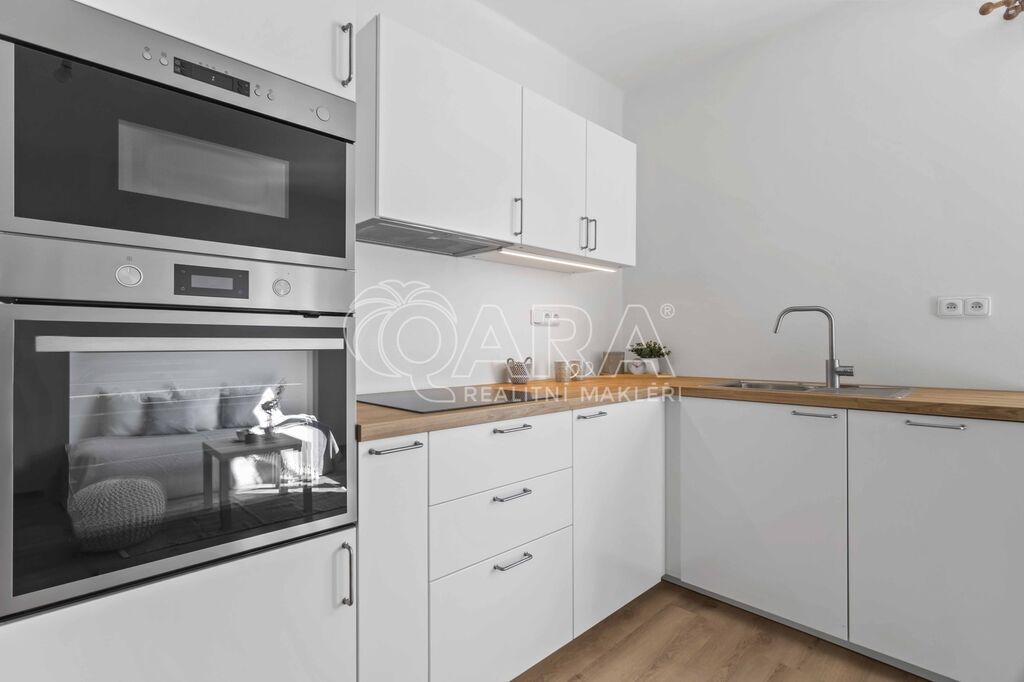 V rámci úprav byla změněna dispozice bytu pro praktičtější využití prostoru, vybudováno nové koupelnové jádro a instalována moderní bílá kuchyňská linka se spotřebiči, mezi které patří horkovzdušná a mikrovlnná trouba, indukční varná deska a myčka nádobí. V obytných místnostech byly položeny nové vinylové podlahy, v koupelně a předsíni je kvalitní dlažba, a vyměněny byly také interiérové dveře, díky čemuž byt působí svěžím a čistým dojmem.